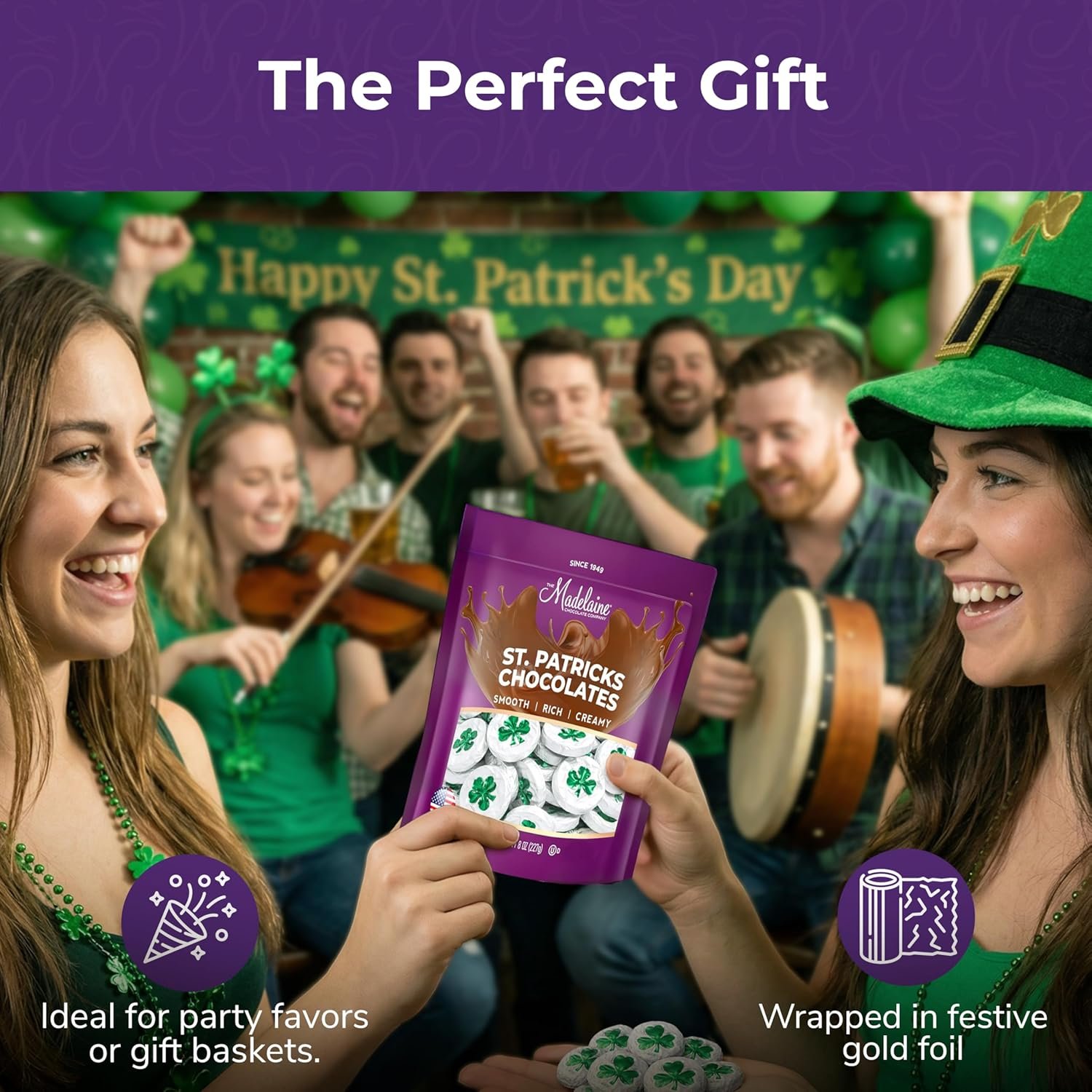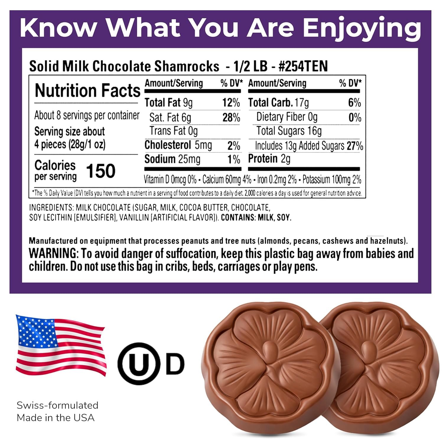 Premium Milk Chocolate: To ensure you enjoy every delectable, mouthwatering bite, Madelaine’s Solid Premium Milk Chocolate Shamrocks are crafted using fresh milk and the finest cocoa beans to create premium American-made, Swiss-formulated chocolate.