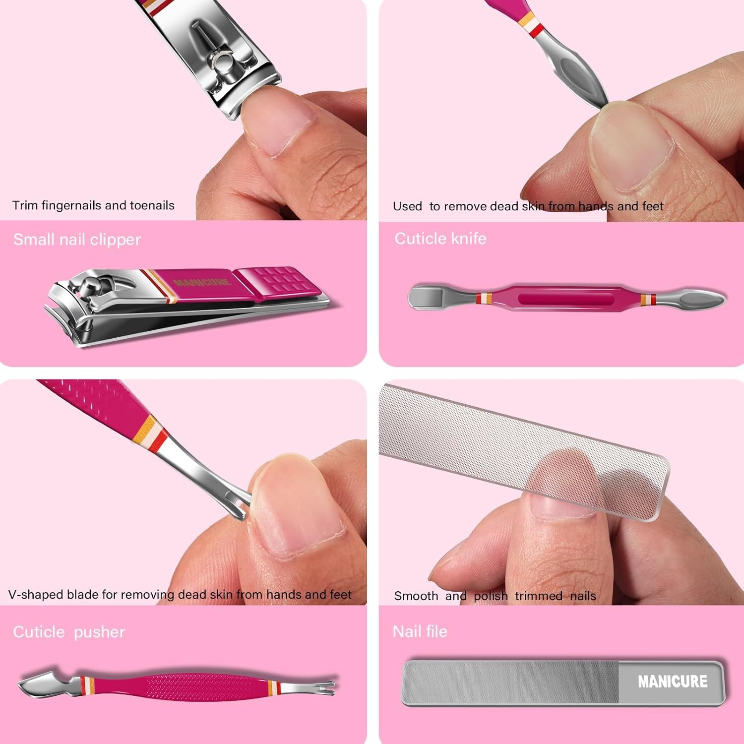 rofessional Manicure Set, 19-Piece Stainless Steel Nail Care Kit with Pink Case