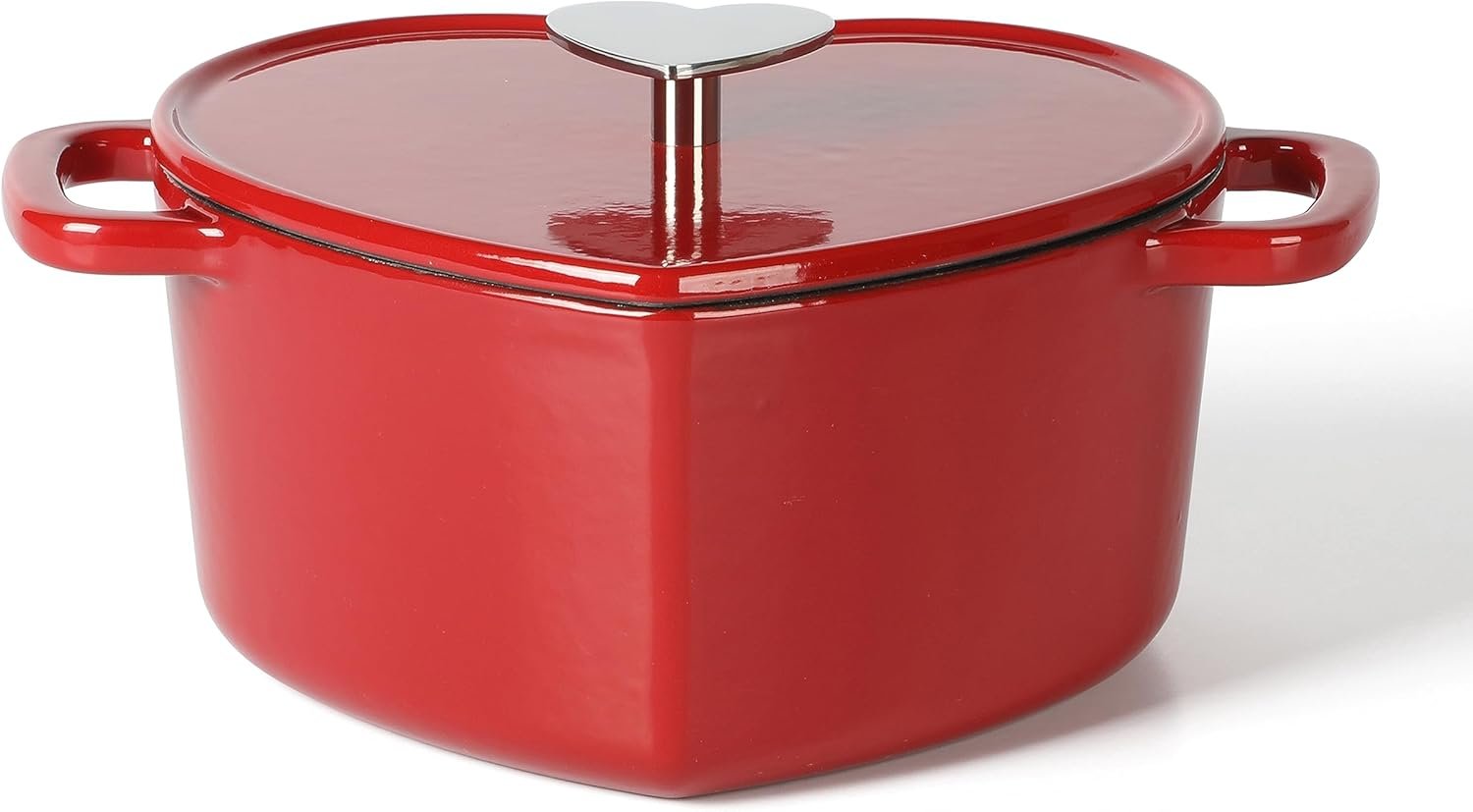 MADE WITH LOVE: Heart-shaped cast iron distributes and retains heat evenly to ensure no-hotspot results. Ideal for one-pot meals, soups, stews, baked casseroles, and more.