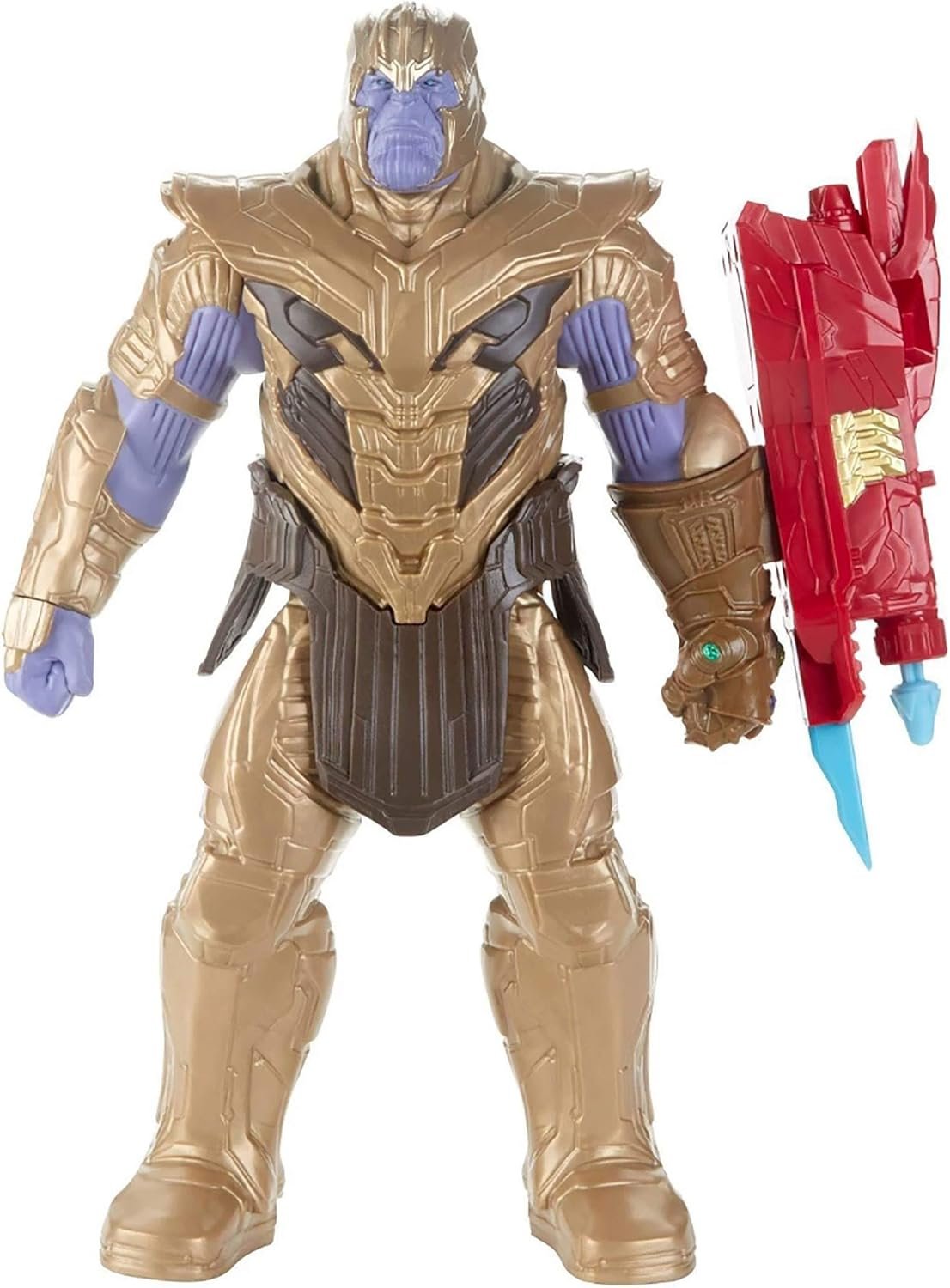 The evil Thanos sets his sights on earth as he continues his quest for the infinity stones. Reimagine the purple Titan collecting Infinity stones in his quest for ultimate power with the 12-inch scale Thanos figure from the Titan hero series, inspired by the Avengers: Endgame movie. This figure includes a port for the Titan hero power FX pack (not included; sold separately with Titan hero power FX figures) so when kids connect the pack, They can power up their figure and activate character-specific sounds and phrases from Avengers: endgame!titan hero power FX pack sold with Titan hero power FX figures. Each sold separately. Subject to availability. Copyright 2018 Marvel. Hasbro and all related terms are trademarks of Hasbro.