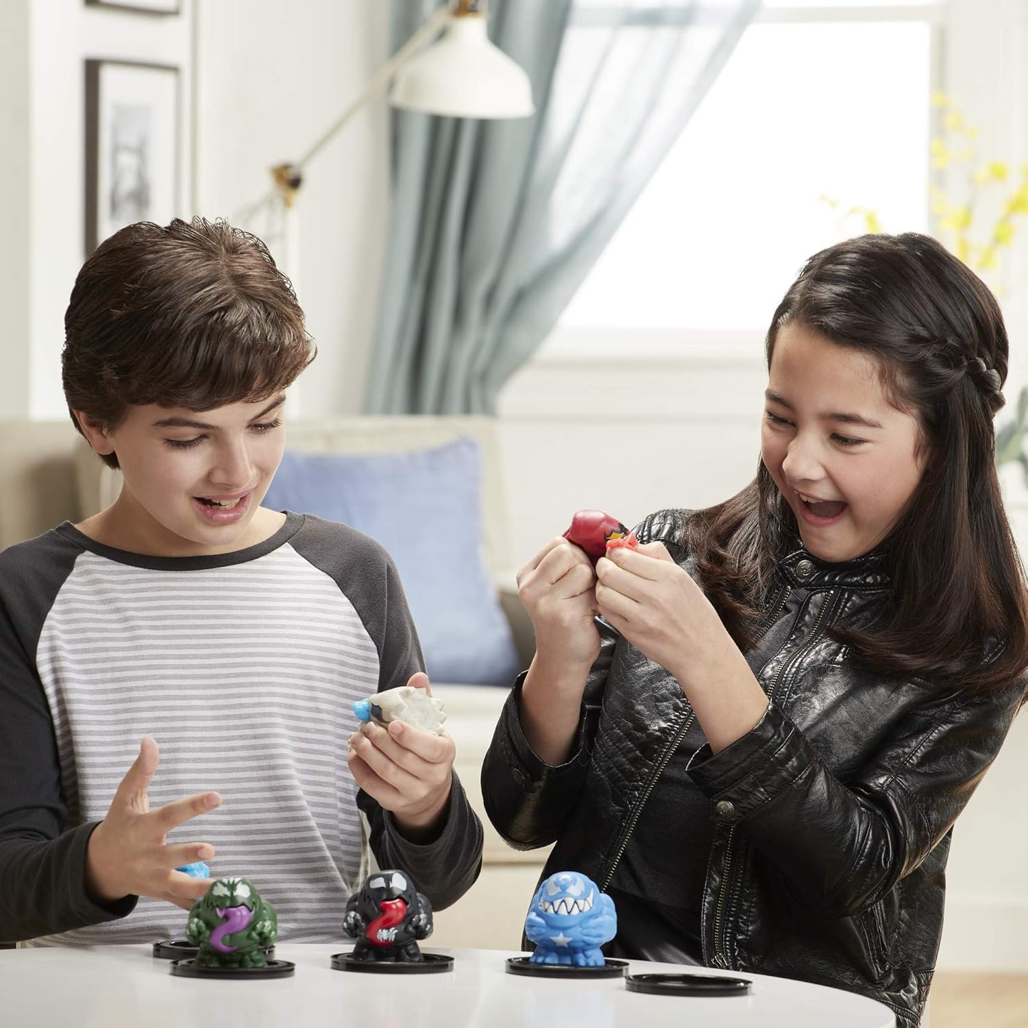 Squeeze ooze surprise! Enter the world of Maximum Venom with this Venom Burst figure When fans squeeze the sides of the Venom Burst figure ooze gushes out along with a second hidden figure! Looks like someone had a big lunch! It’s an ooze-filled surprise that’s definitely “venomized”! Outer symbiote figures feature a “venomized” design inspired by Marvel’s Spider-Man animated series on Disney XD and include Venom Anti-Venom Carnage Cap Symbiote Anti-Venom Groot and Symbiote Groot! Surprise inner characters include Gamma Hulk Captain America Black Spider-Man Lightning Thor Groot Metallic Iron Man Miles Morales Red Iron Man Red Spider-Man Green Goblin Astral Doctor Strange and Modok Each sold separately Subject to availability Each figure also comes in a can that’s perfect for storing excess ooze Collect the Venom Burst figures to maximize the “venomized” fun!