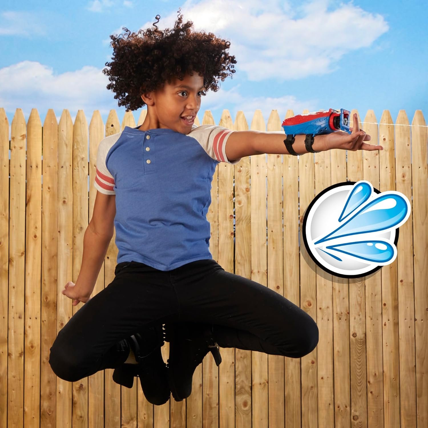BLAST WATER, TOO: Fill included water pouch, install inside blaster, and press button to blast water!