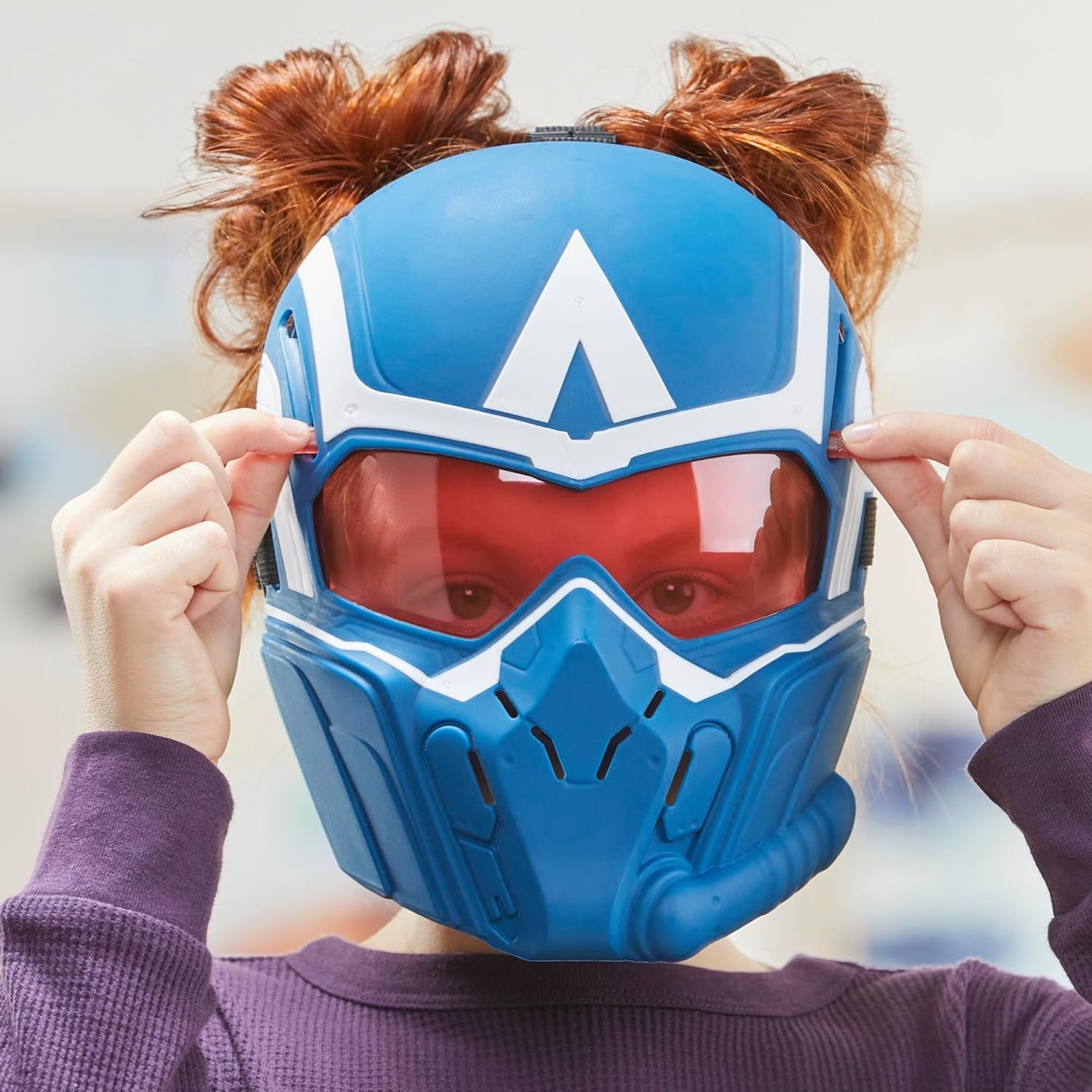 This Marvel Studios Captain America Brave New World Flight Vision Mask is a role play toy kids 5 and up can use to dress up as Sam Wilson! Boys and girls can play as Captain America on his latest mission to save the world against a dangerous new nemesis. Flight Vision Mask features eye lens that can slide up or down and includes a stretchy back strap to comfortably fit most kids 5 and up. This Captain America toy makes a great Marvel gift for any occasion, and can also be a fun accessory for Captain America and super hero Halloween costumes! Look for other exciting action figures, role play toys, and playsets inspired by Marvel Studios Captain America Brave New World. (Each sold separately. Subject to availability.) Copyright MARVEL. All trademarks and registered trademarks are the property of their respective owners. Hasbro and all related terms are trademarks of Hasbro.