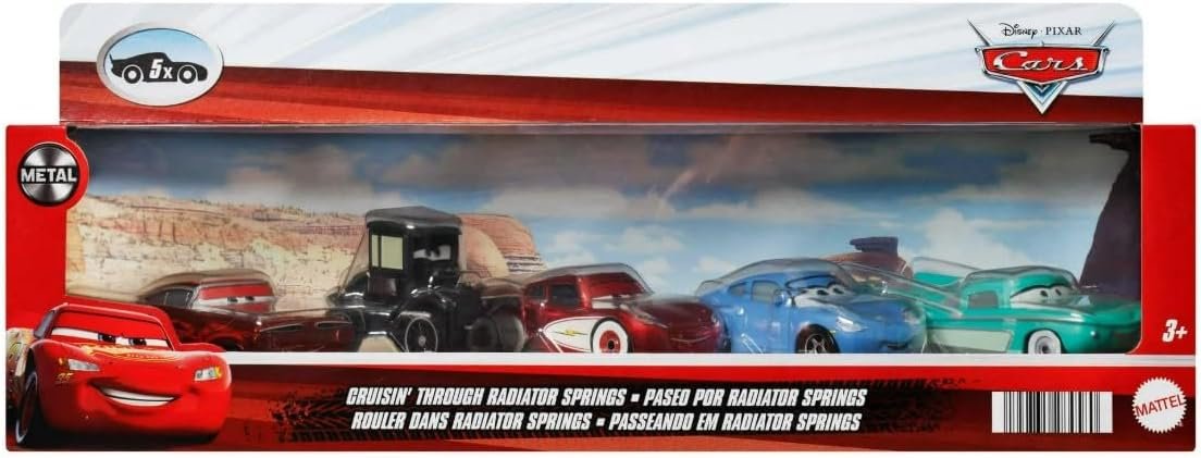 Bring the magic of Radiator Springs home with this delightful 5-pack of Cars character vehicles. This collection features fan favorites from the beloved franchise, including the charismatic Lightning McQueen in his cruising style, the charming Sally, the artistic Ramone, the vintage Lizzie, and the welcoming Flo. Each die-cast vehicle captures the unique personality and details that make these characters special. Perfect for imaginative play, these cars are sized just right for little hands to zoom around their own miniature Radiator Springs. Whether recreating favorite movie scenes or creating new adventures, this set provides hours of entertainment. This character collection makes an excellent addition to any Cars enthusiast’s collection and is ideal for both play and display.