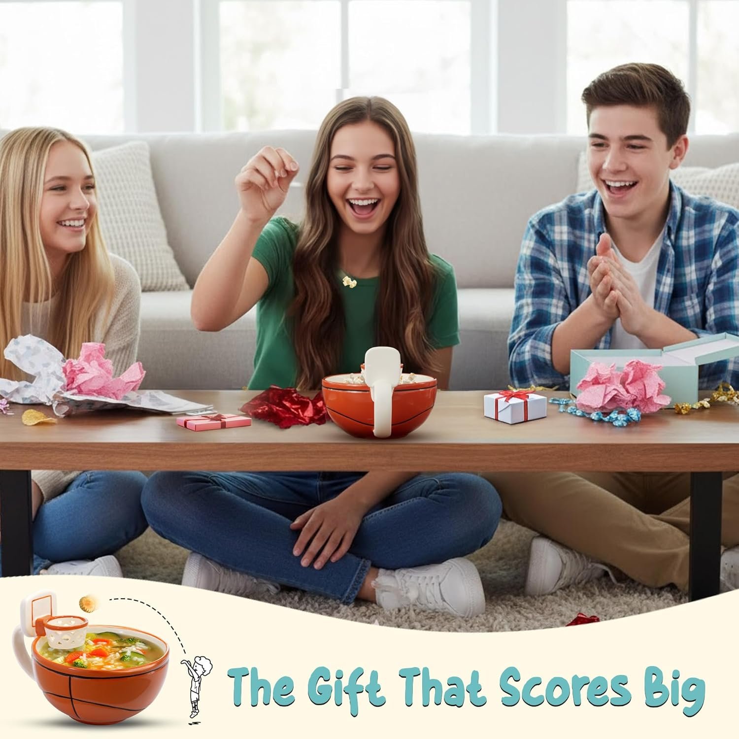Interactive 16oz Basketball Mug: Shoot marshmallows, cereal, or snacks into the mini basketball hoop – a fun way for kids to enjoy breakfast, hot chocolate, popcorn, or ice cream at the kitchen table, around the breakfast bar, or during cozy evenings on the couch.