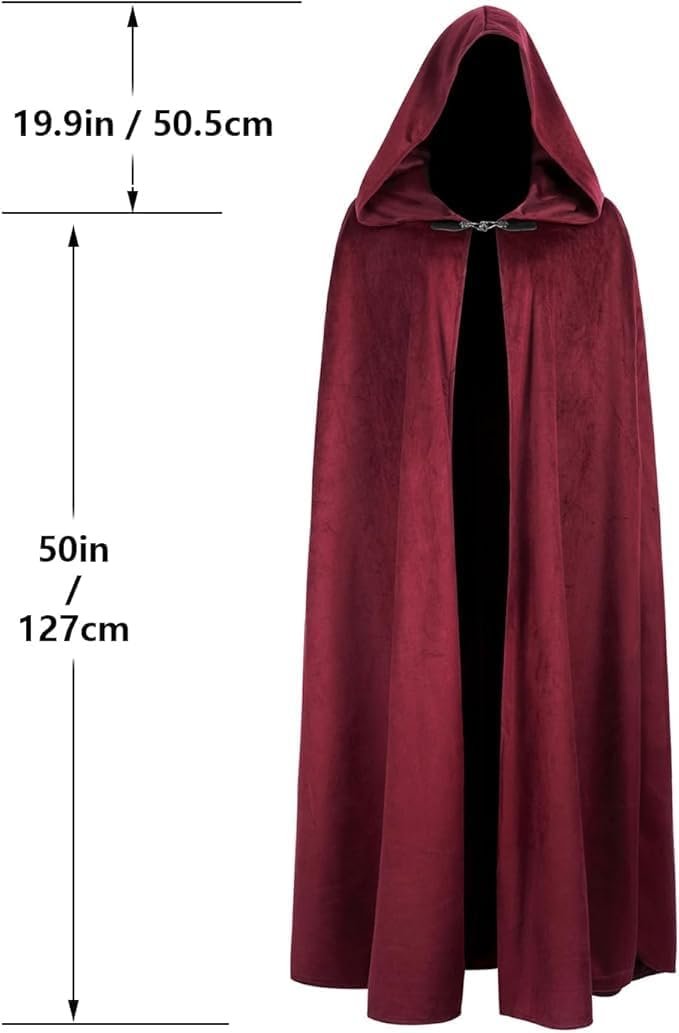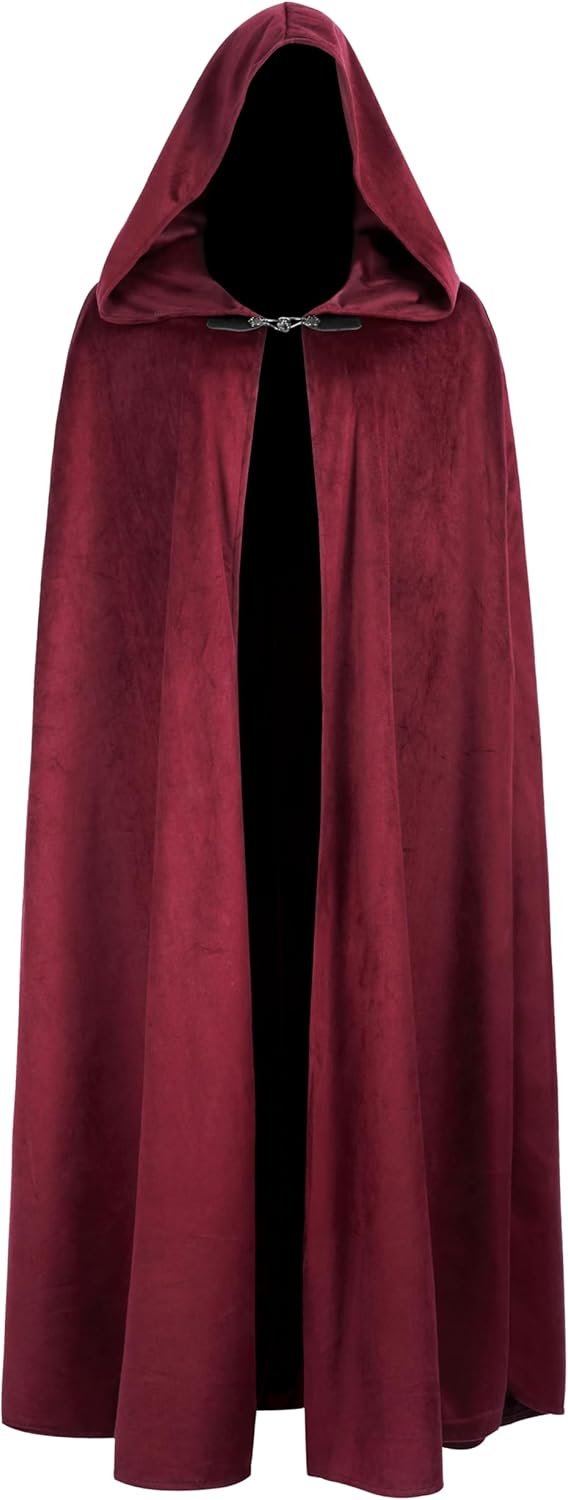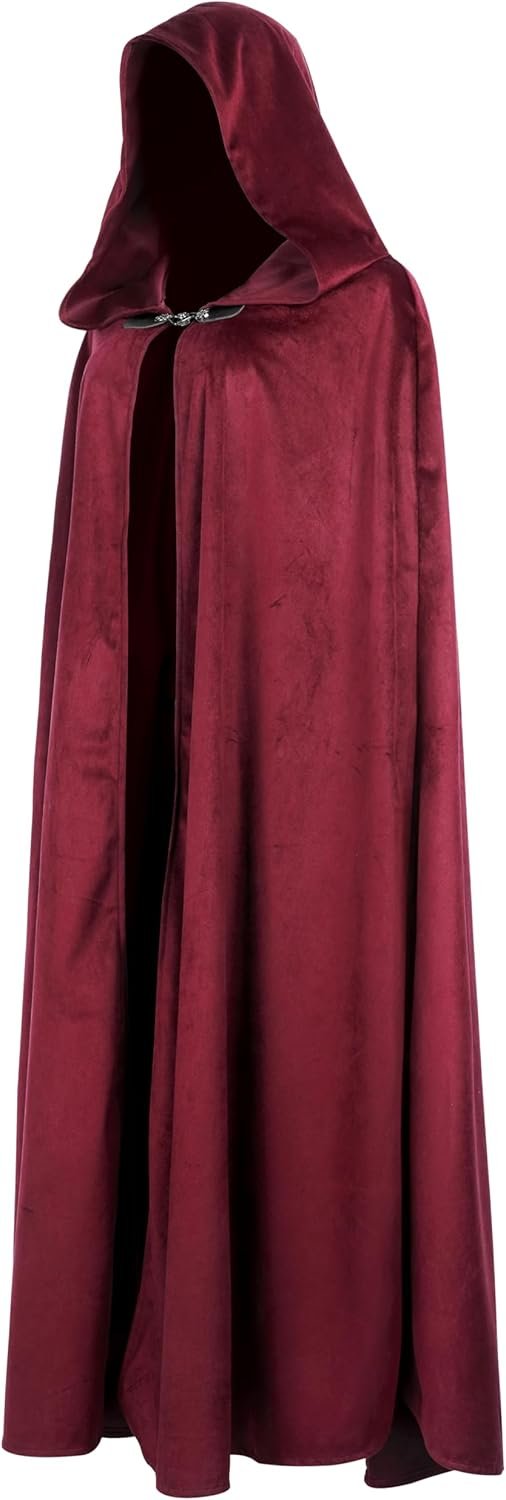 Customers find the medieval cloak to be well-made with a soft velvet/corduroy feel and good construction, appreciating its thick material that provides good wind protection. The hood is spacious, with one customer noting it’s large enough to hide their face, and they consider it a good addition to cosplay outfits, with one mentioning it’s perfect for RenFaire and Jedi costumes. While the clasp receives mixed feedback, customers generally agree it offers good value for the price.