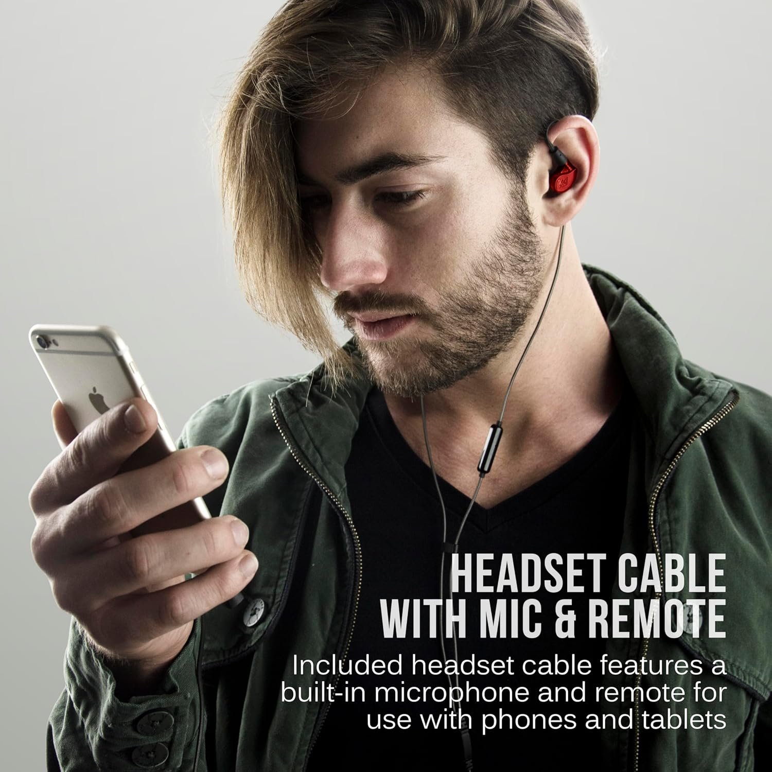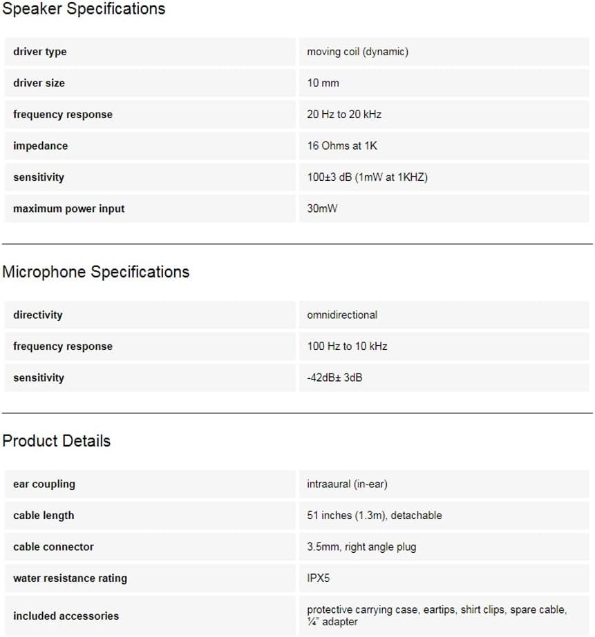 REAL-WORLD RELIABILITY, 2 CABLES INCLUDED: built to last with a sweat-resistant design and detachable, user-replaceable cables; works with all devices with standard 3.5mm (1/8″) or 6.3mm (1/4″) headphone/stereo audio jack; IN THE BOX: regular audio cable, headset cable with mic/remote for laptops and mobile devices, carrying case, Comply foam eartips, silicone eartips (6 pairs), 1/4″ (6.3mm) adapter.
