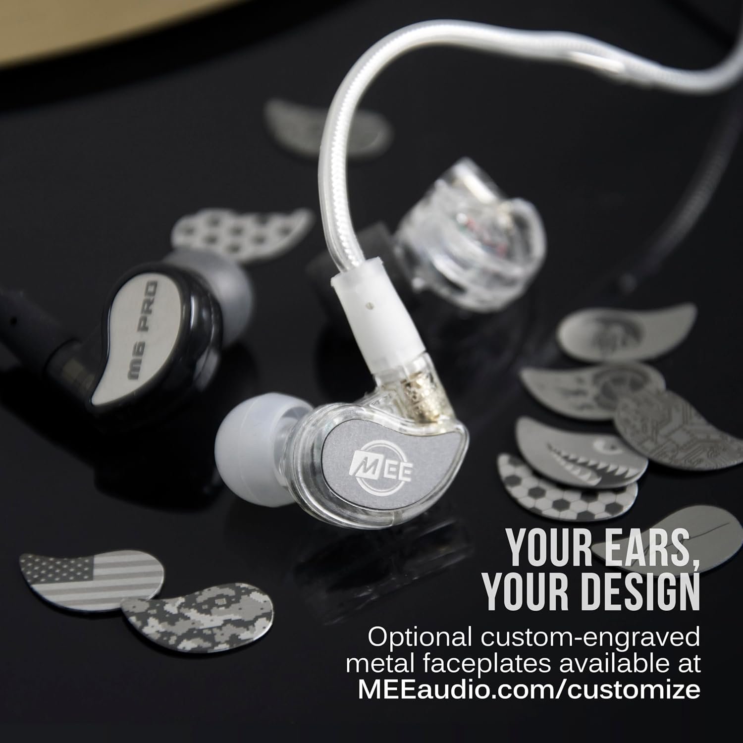 Take your M6 PRO to the next level with custom-fit 3D-printed eartips + advanced custom-engraved faceplates – contact MEE audio