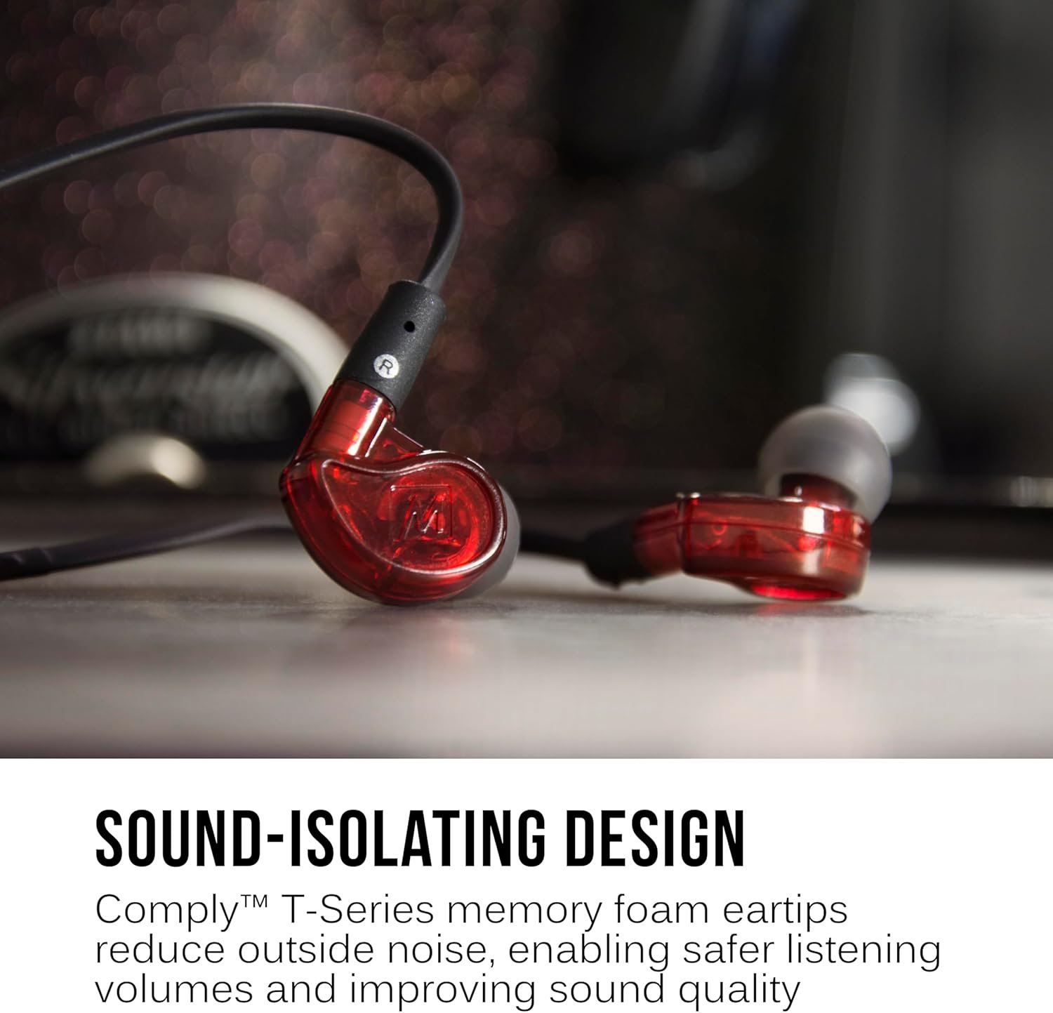 Included Comply T-Series memory foam eartips reduce outside noise, enabling safer listening volumes