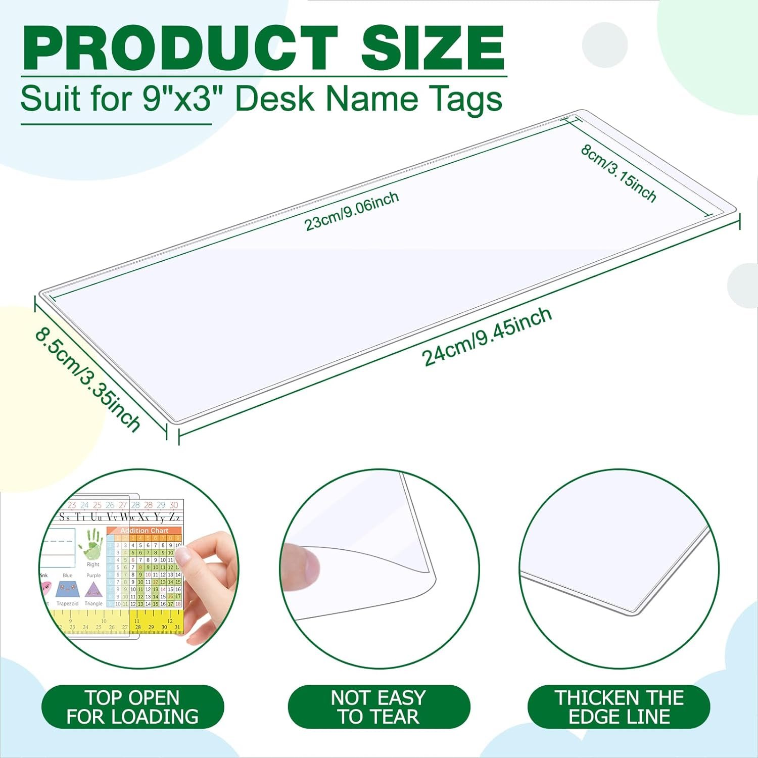 【Package】You can get 25 transparent self-adhesive bags with 9.5 “x 3.4” nameplates, which can hold up to 9.1 “x 3.1” card. Before purchasing, ensure compatibility by confirming the size of your nameplate tag-.
