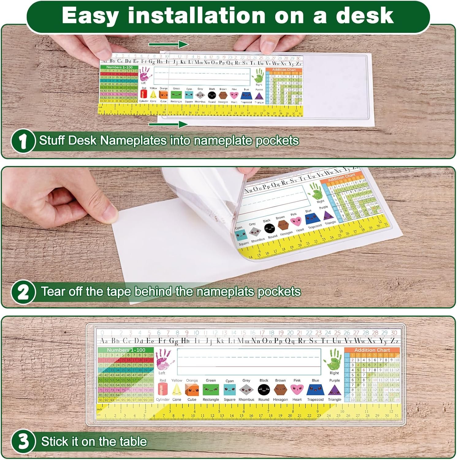 【Self-adhesive Design】The back of nameplate sleeves is adhesive. Firstly you should put the brand name into the bag, then peel off the protective film on the back, in that time, you can easily paste it onto tables, boxes, walls, or other smooth surfaces.