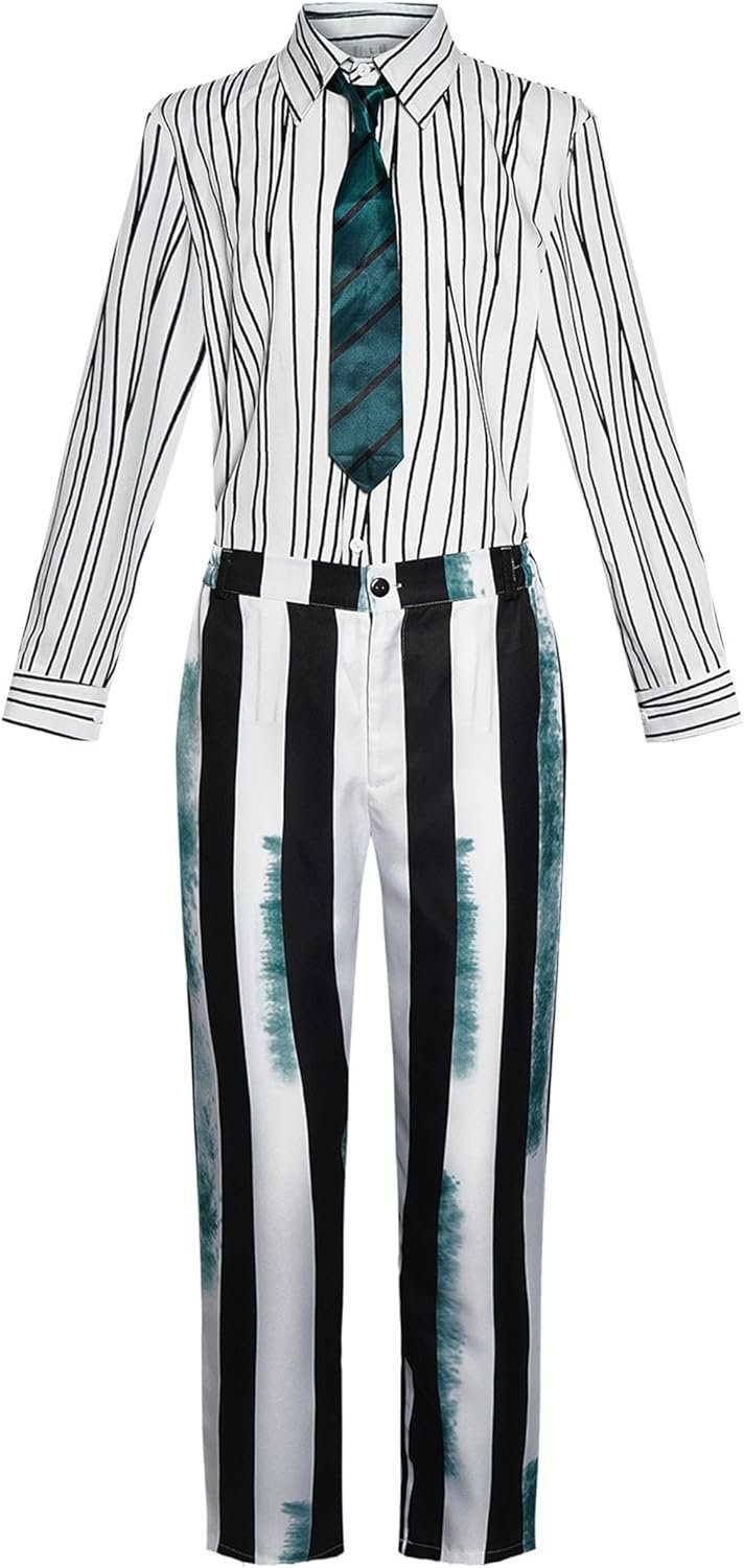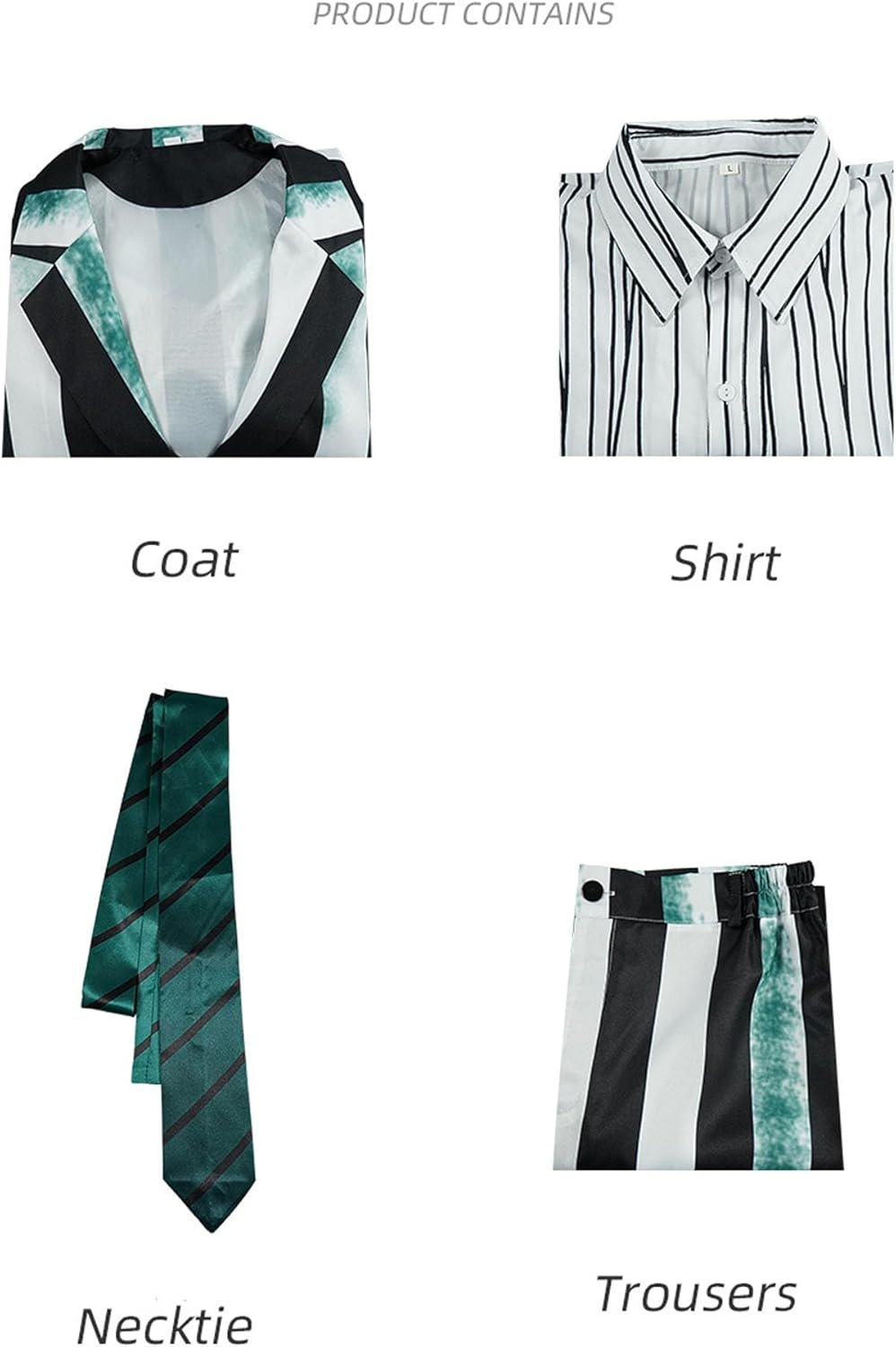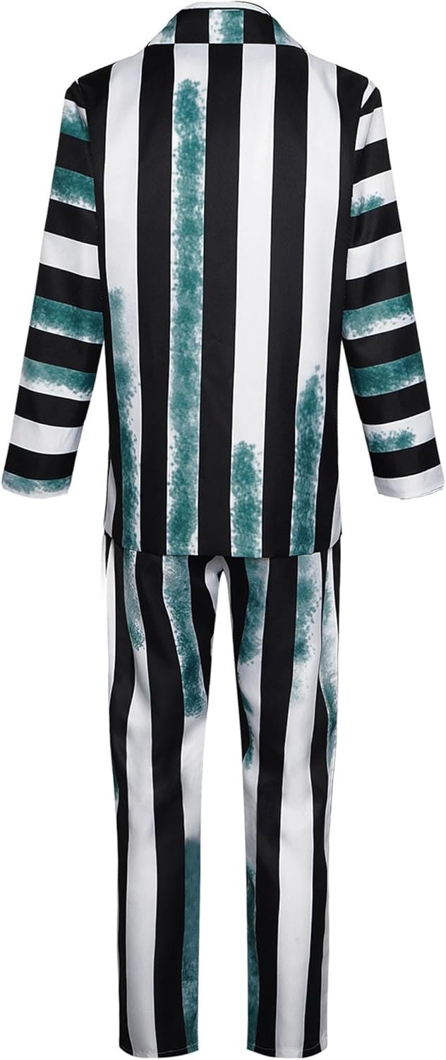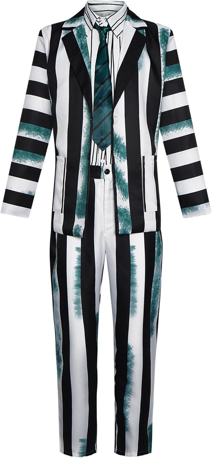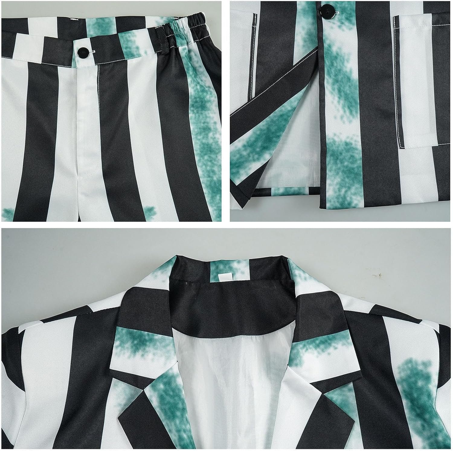 Mens Movie Costume Black and White Striped Jacket with Green Spots Horror Comedy Halloween Costumes Suit
