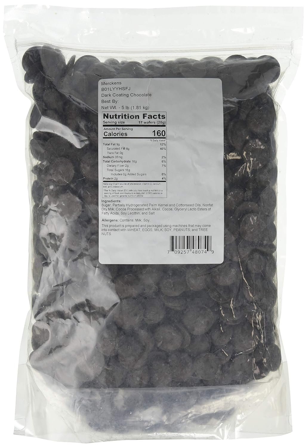Merckens Dark Cocoa Coating Melting Wafers. These high quality dark cocoa coating wafers have a rich taste similar to dark chocolate and will work very nicely for all your candy-making needs. This listing is for a bulk 5 pound package of Merckens dark cocoa coating melting wafers.