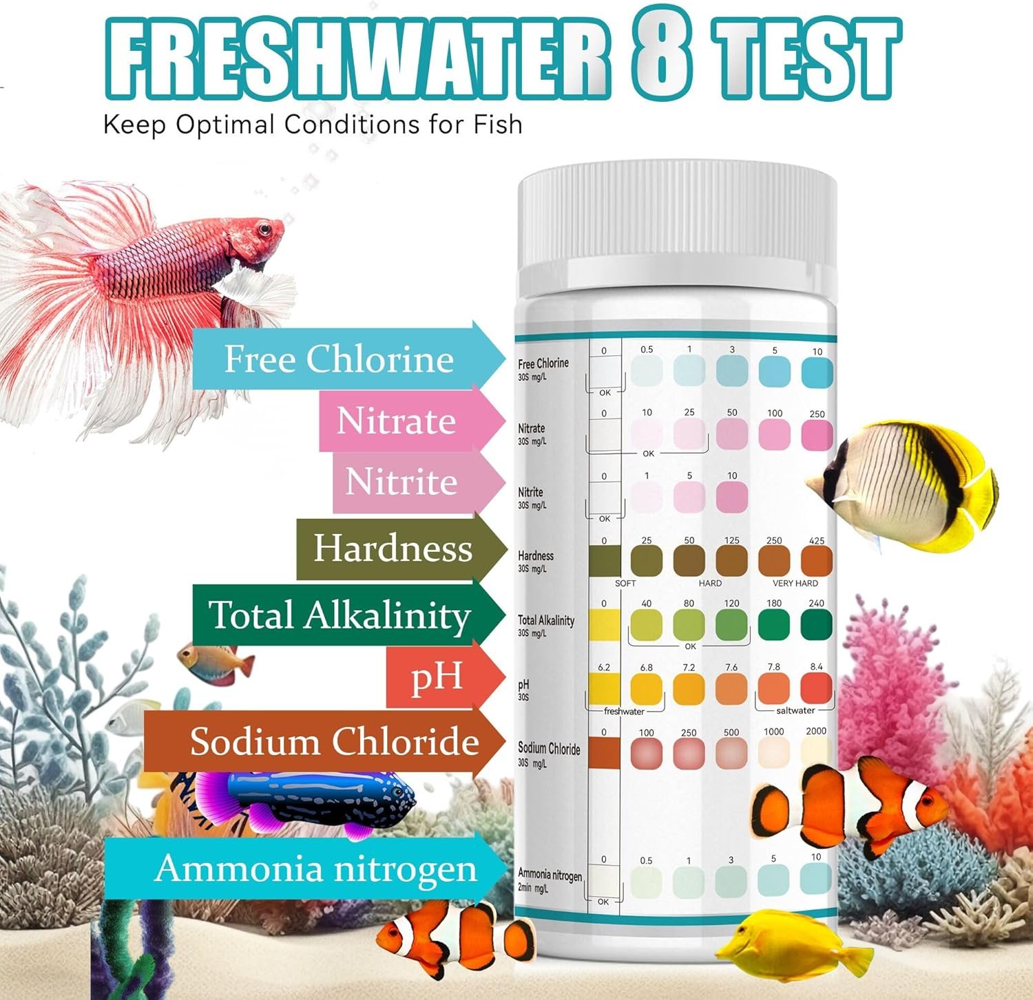 This 8-in-1 testing is Convenient and mess-free testing method, suitable for both beginner and experienced aquarists
