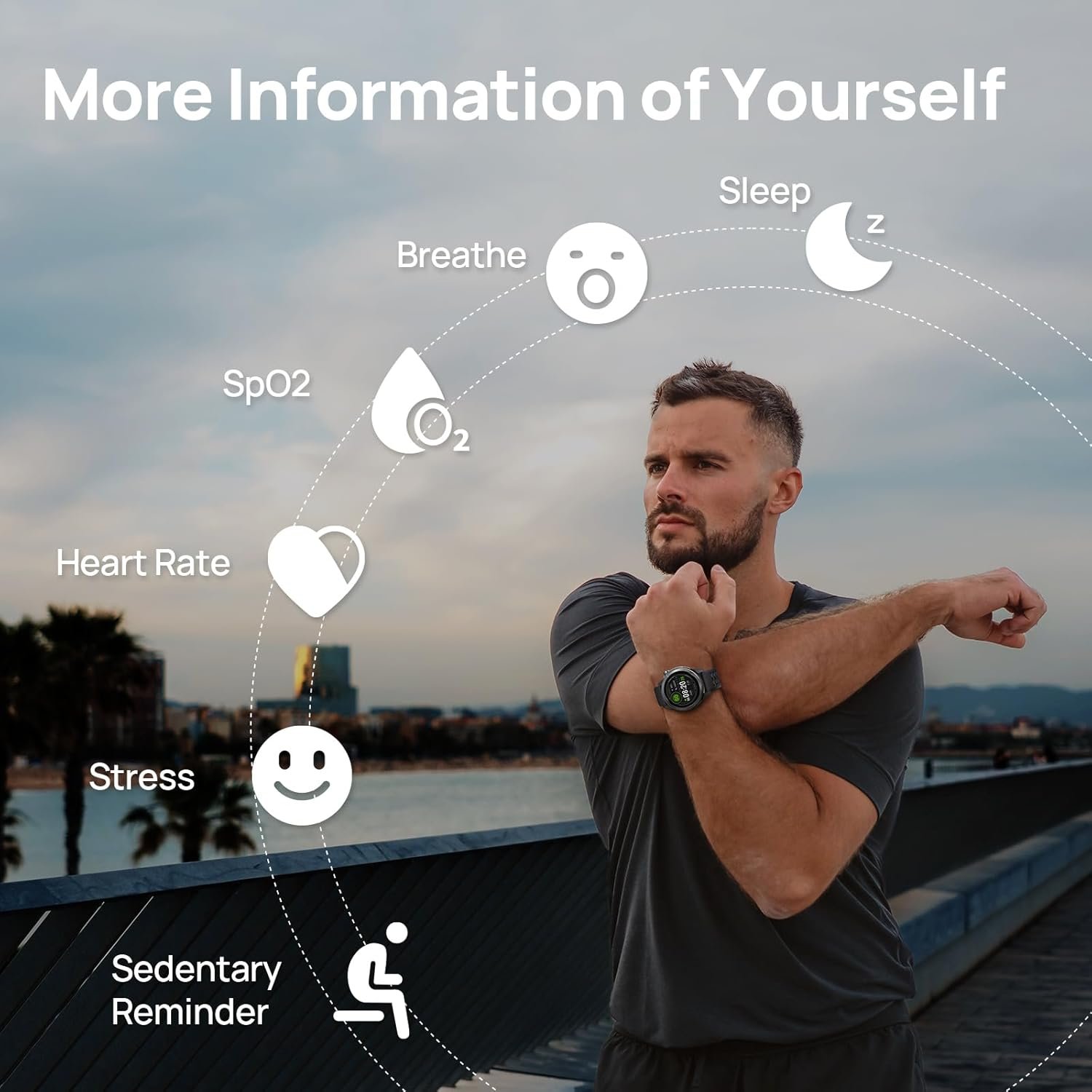 [ Professional Running Mode ] This Sport Watch provides real-time running data, calculates and displays the running ability index, VO₂ Max and its trends. It uses professional algorithms to analyze core indicators such as cadence, stride, and pace, accurately tracks your body’s adaptation to training, and offers coach-like guidance for runners—ensuring every stride is at your best.