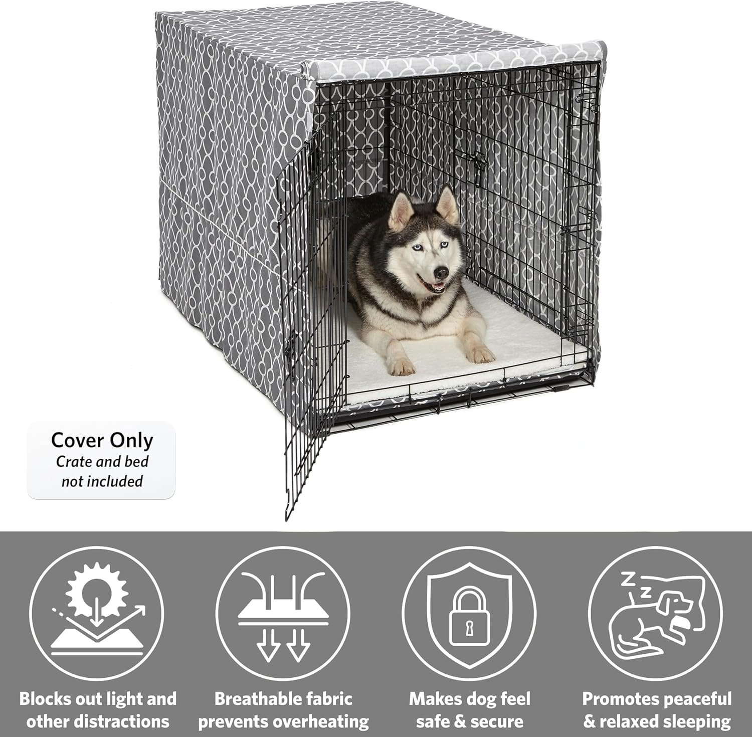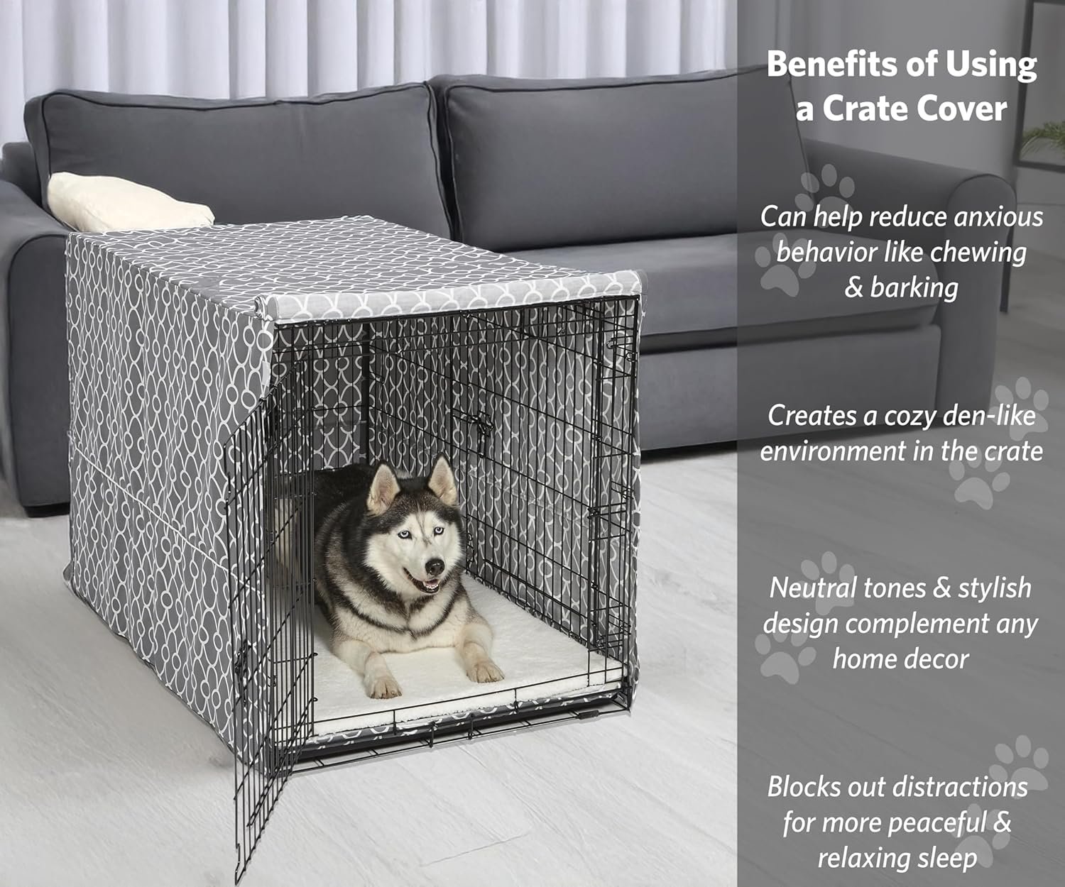 Creates a Calming Crate Environment: Helps reduce anxious behaviors like barking and chewing by providing the privacy and den-like security dogs instinctively seek