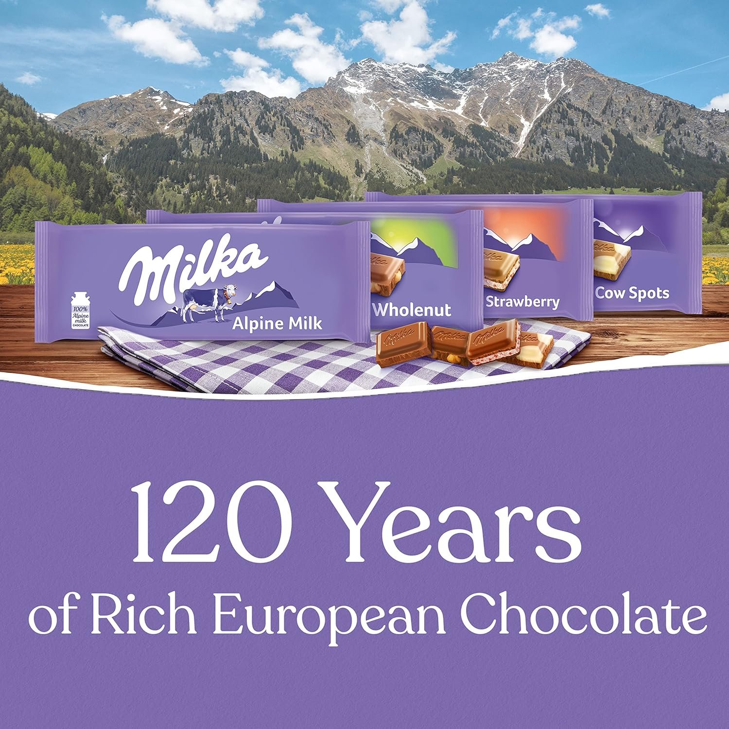 Since 1901, Milka’s Milk Chocolate Bars have been made with 100% Alpine milk sourced from family-run farms. The result? Mouthwatering chocolate with an unmistakable taste and texture