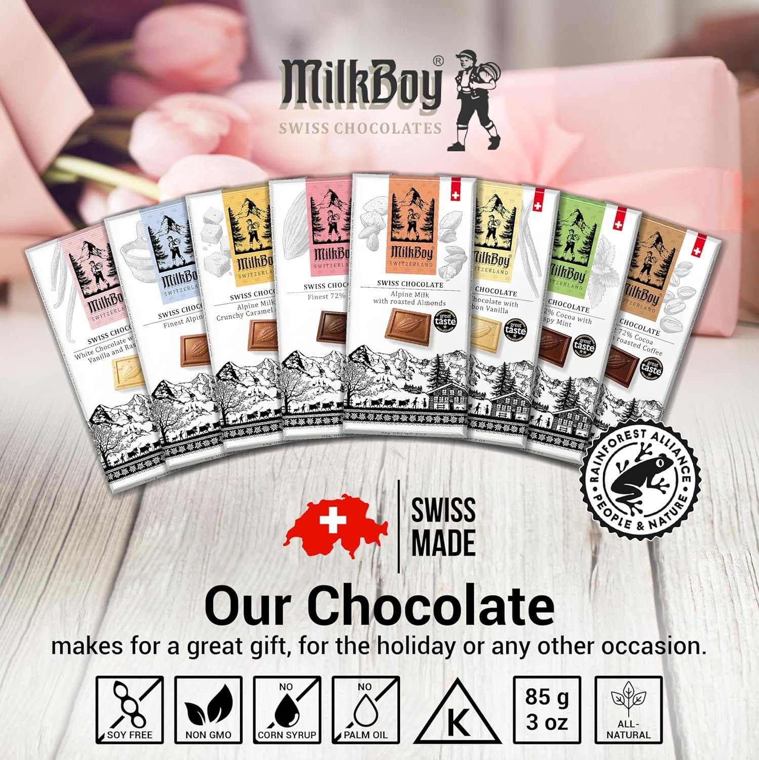 Enjoy Authentic Swiss Chocolate – MilkBoy Swiss Chocolates are made in Switzerland using the best-quality ingredients letting you enjoy the goodness of the Swiss Alps in every bite