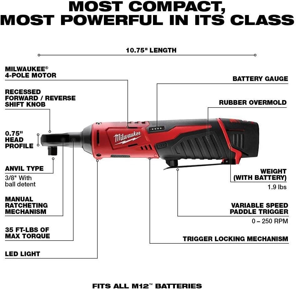 - M12 ratchet delivers up to 35 ft./lbs. of torque with variable speed metal trigger for greater control