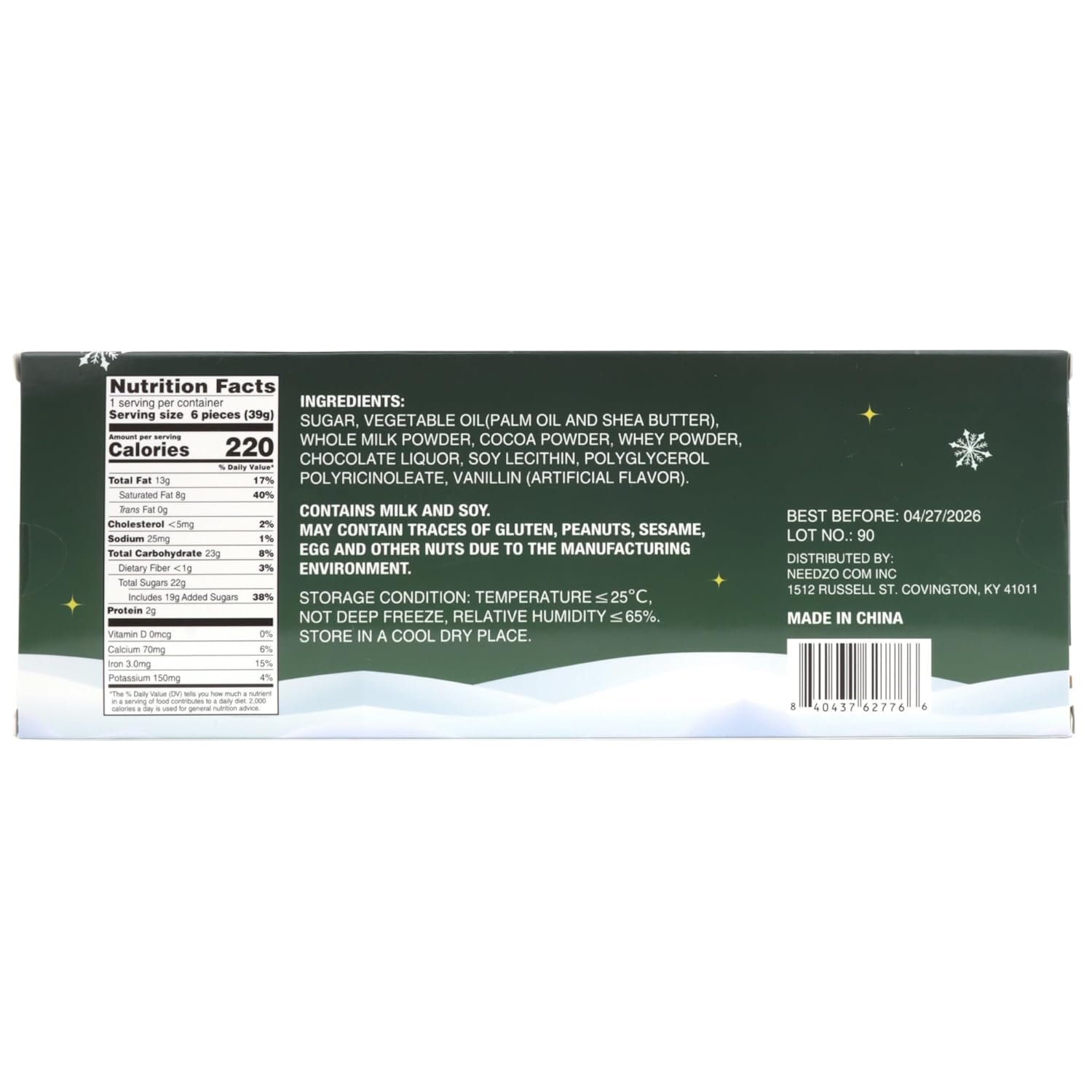 Includes 6 bite-sized pieces total weight 1.38 ounces (39g)
