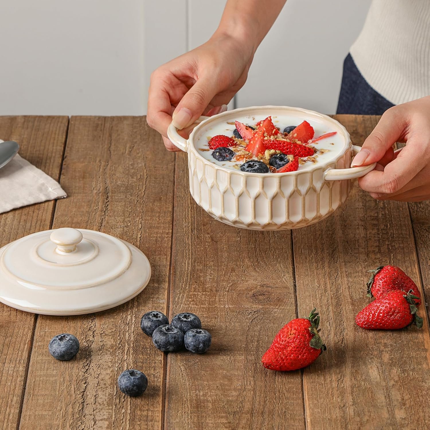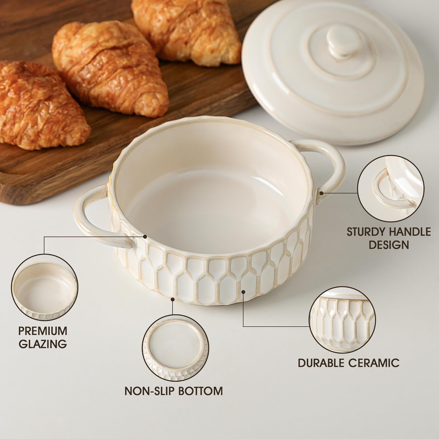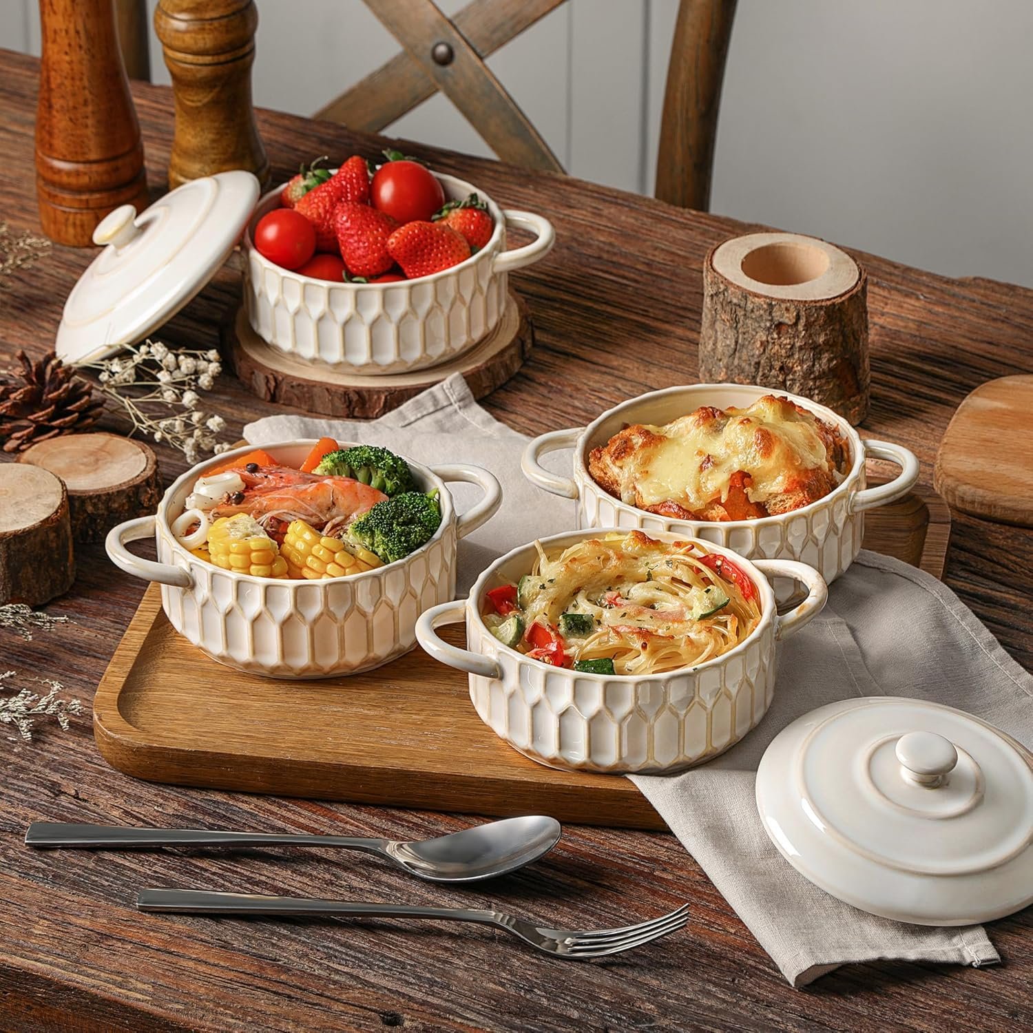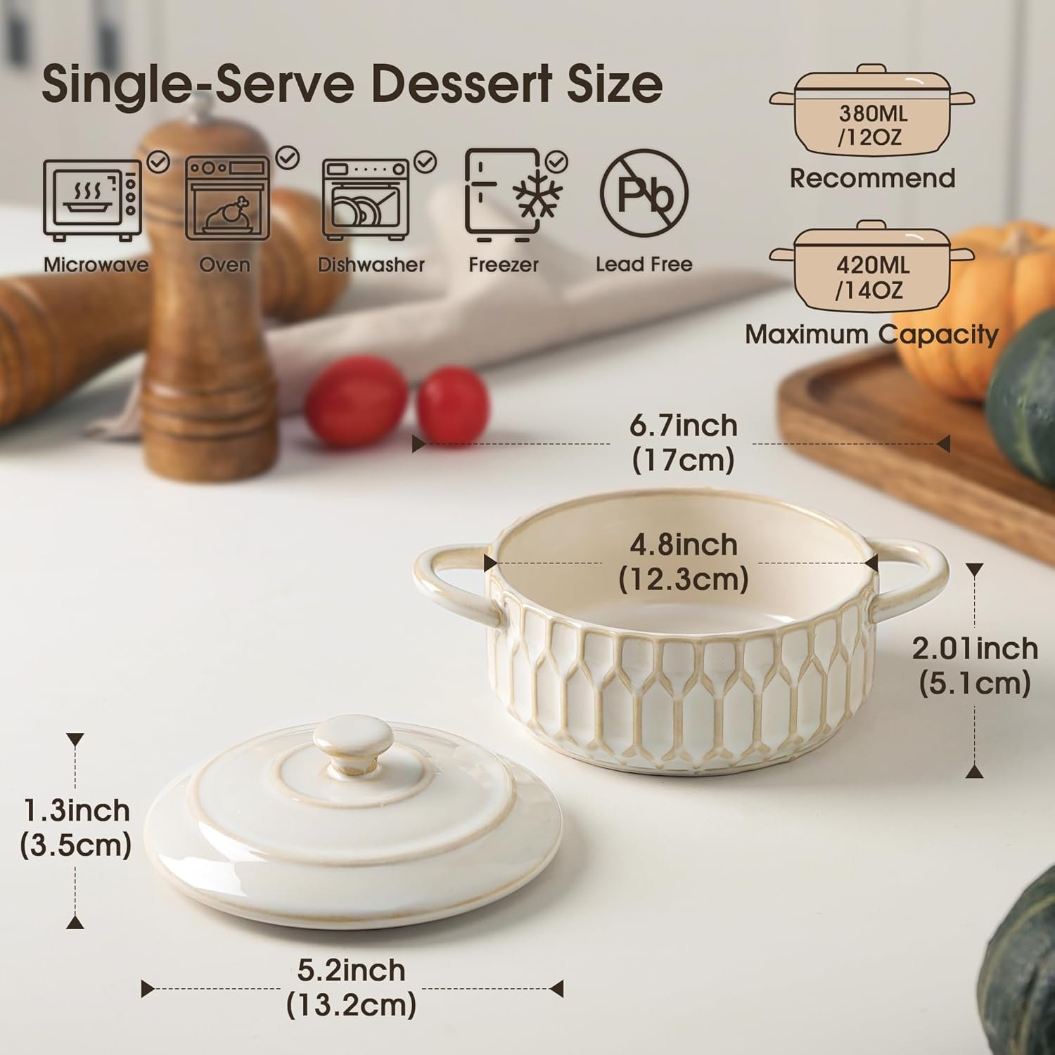 【High-Quality Material 】Casserole Dish for Oven with lids are made of high-quality ceramic with elegant Smooth glaze which is lead-free, sturdy, this soup bowl can withstand higher temperatures than stoneware. Safe to use in the microwave and oven for easy baking and reheating. Dishwasher safe, saves you washing time after meals