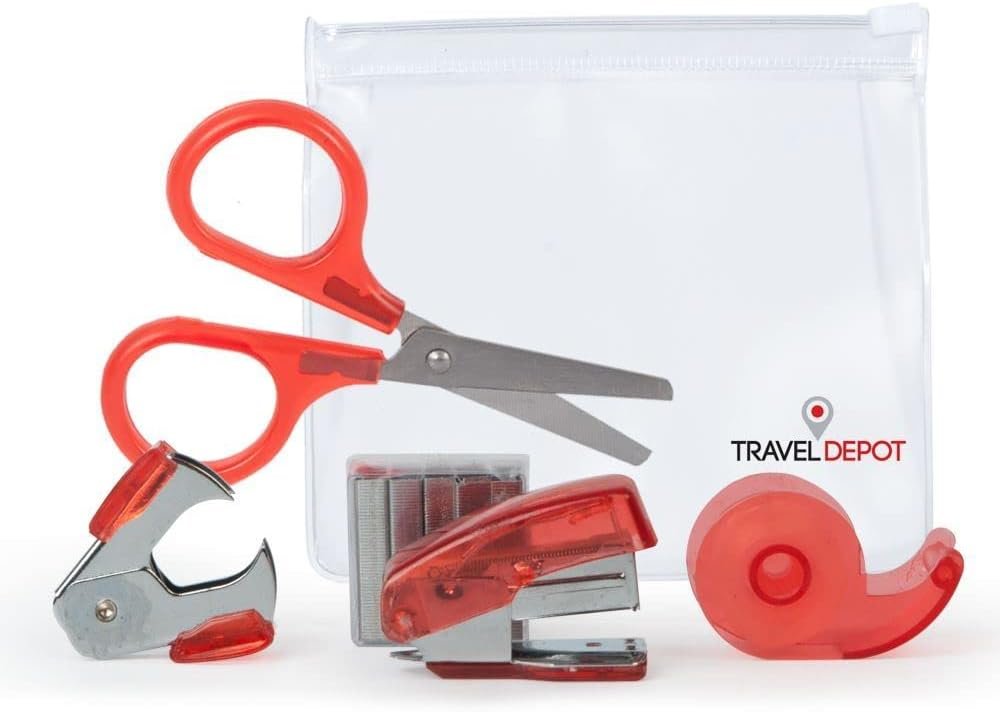 Stay productive on the go with these travel-sized office supplies. The essential office supplies in one handy travel size pouch. Includes scissors, tape with dispenser, stapler with extra staples and a staple remover. Each kit includes all the office supplies you need to ensure you stay functional outside of your office. The slim pouch is 5″ long by 4.5″ tall and easily slips into a briefcase or side pocket for easy storage.