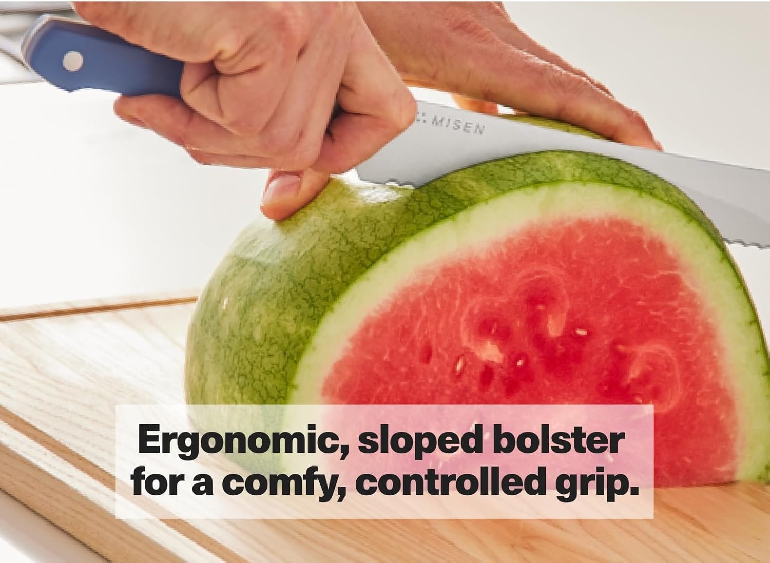 The Misen Serrated Bread Knife redefines precision and durability with its high-carbon Japanese AUS8 steel blade. Designed for effortless slicing through bread, pastries, and fruits, its razor-sharp edge ensures clean cuts every time. The ergonomic handle provides superior grip and comfort, making it a versatile and reliable tool for any kitchen. Perfect for home chefs and culinary enthusiasts, this knife combines premium materials with thoughtful craftsmanship to elevate your cooking experience. A must-have for those seeking excellence in every slice.