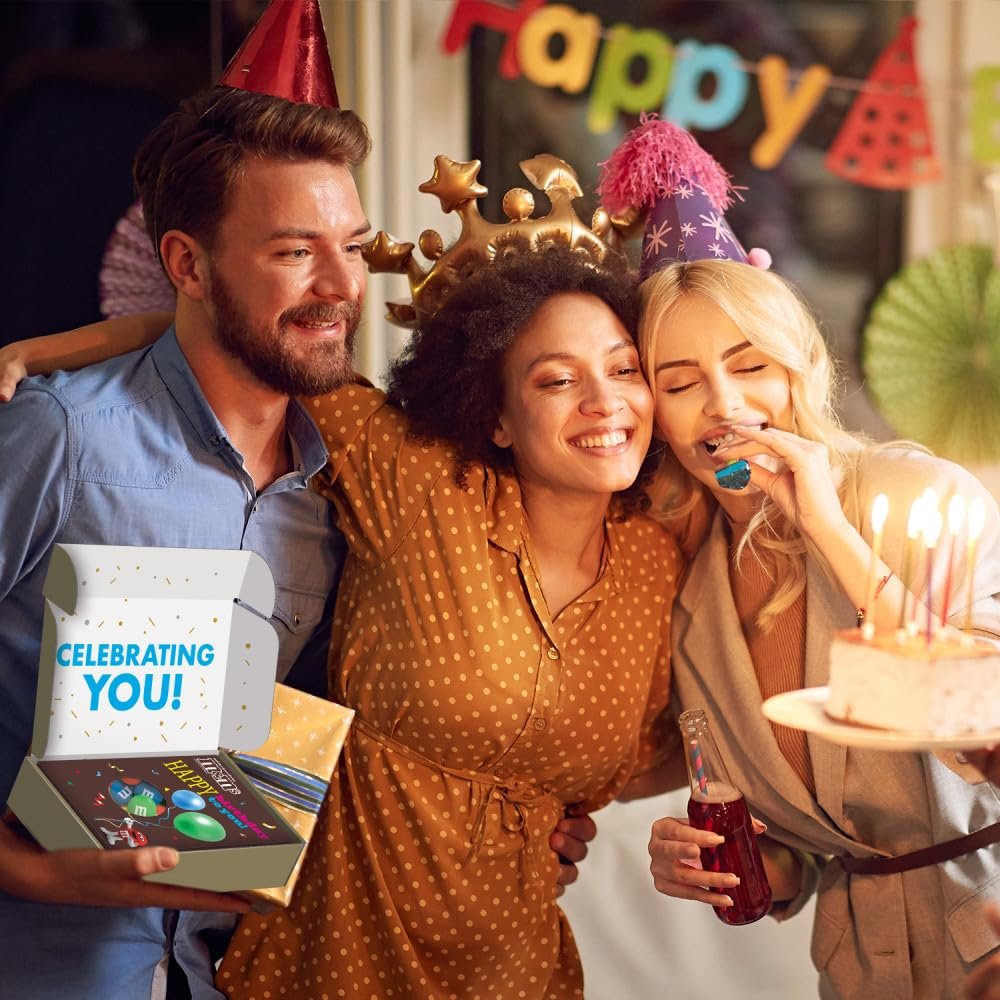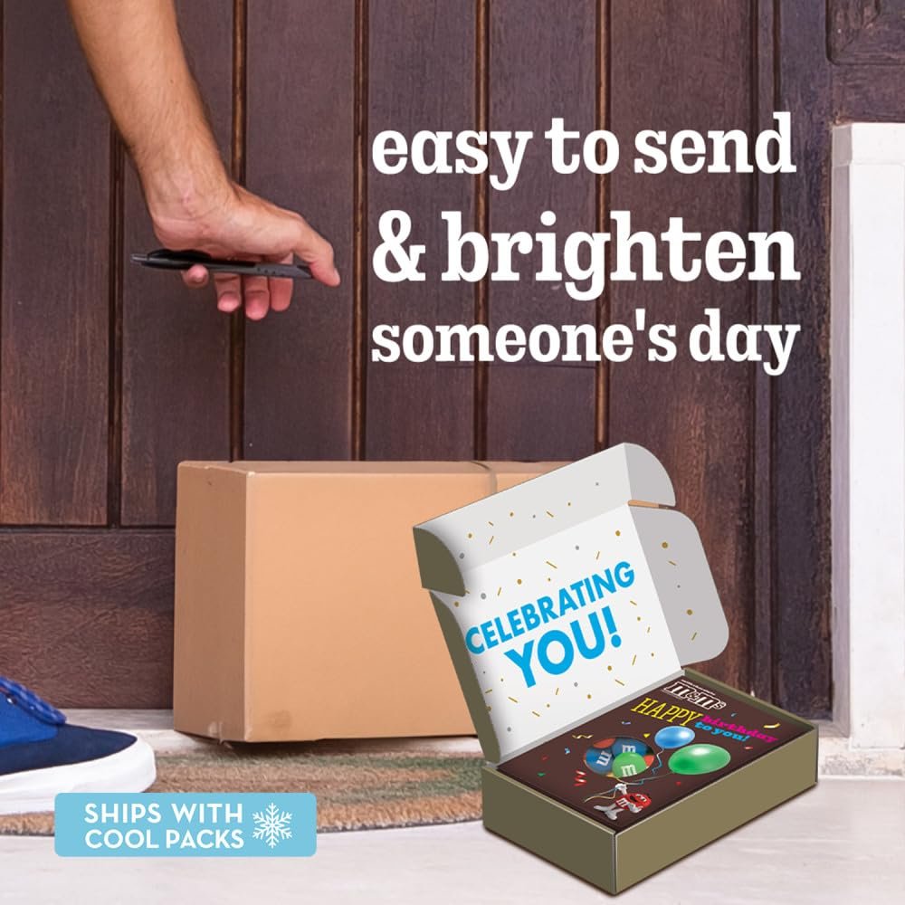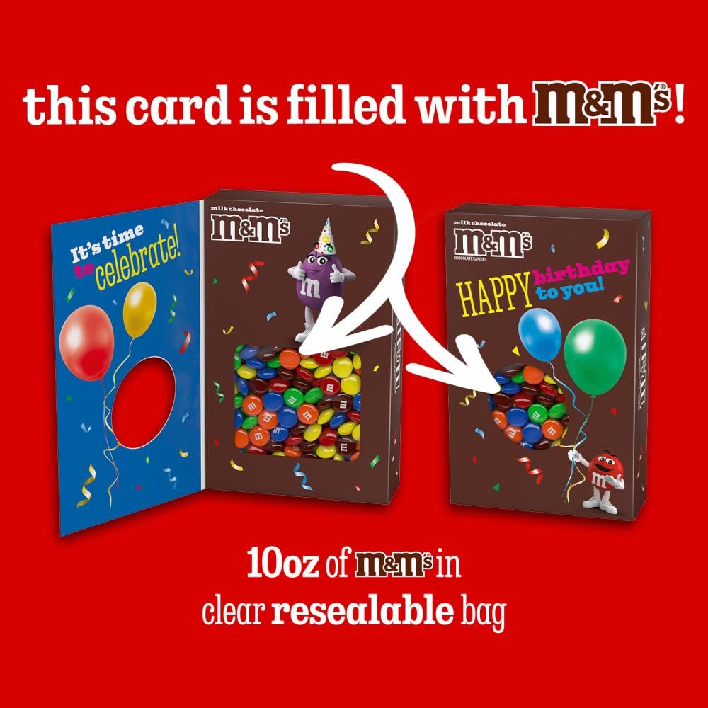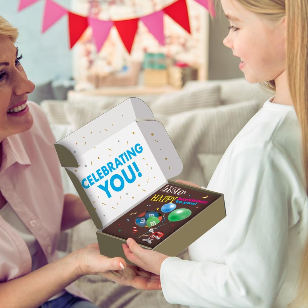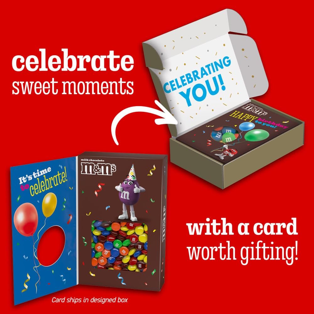 SURPRISE! Make birthdays extra special with M&M’S Milk Chocolate Candy Gift Box. This Amazon exclusive is a sweet way to say Happy Birthday to someone special. As your loved one opens this gift card box, they receive both a warm birthday wishes card and a resealable bag of M&M’S Milk Chocolate Candy- all in one delightful gift box. Make sure you add an extra personal touch by selecting the gifting option and writing a message at checkout. Now, it’s ready to ship directly to your recipient’s door- from you, with love. With colorful M&M’S chocolates peeking through the festive balloon design on each gift box, it’s a sweet celebration that’s perfect for all ages. Make someone feel truly special with this all-in-one birthday candy box filled with love and, of course, M&M’S candies. Say Happy Birthday with a click!
