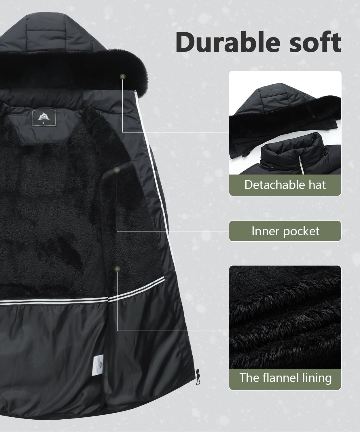 Customers find the winter coat keeps them warm and appreciate its quality, comfort, and style that adds flair to any outfit. The detachable hood is roomy, and customers consider it good value for money. The zipper quality receives mixed feedback – while some find it heavy-duty, others report it breaking within the first week. Customers disagree on the sizing, with some finding it perfect while others say it’s too big.
