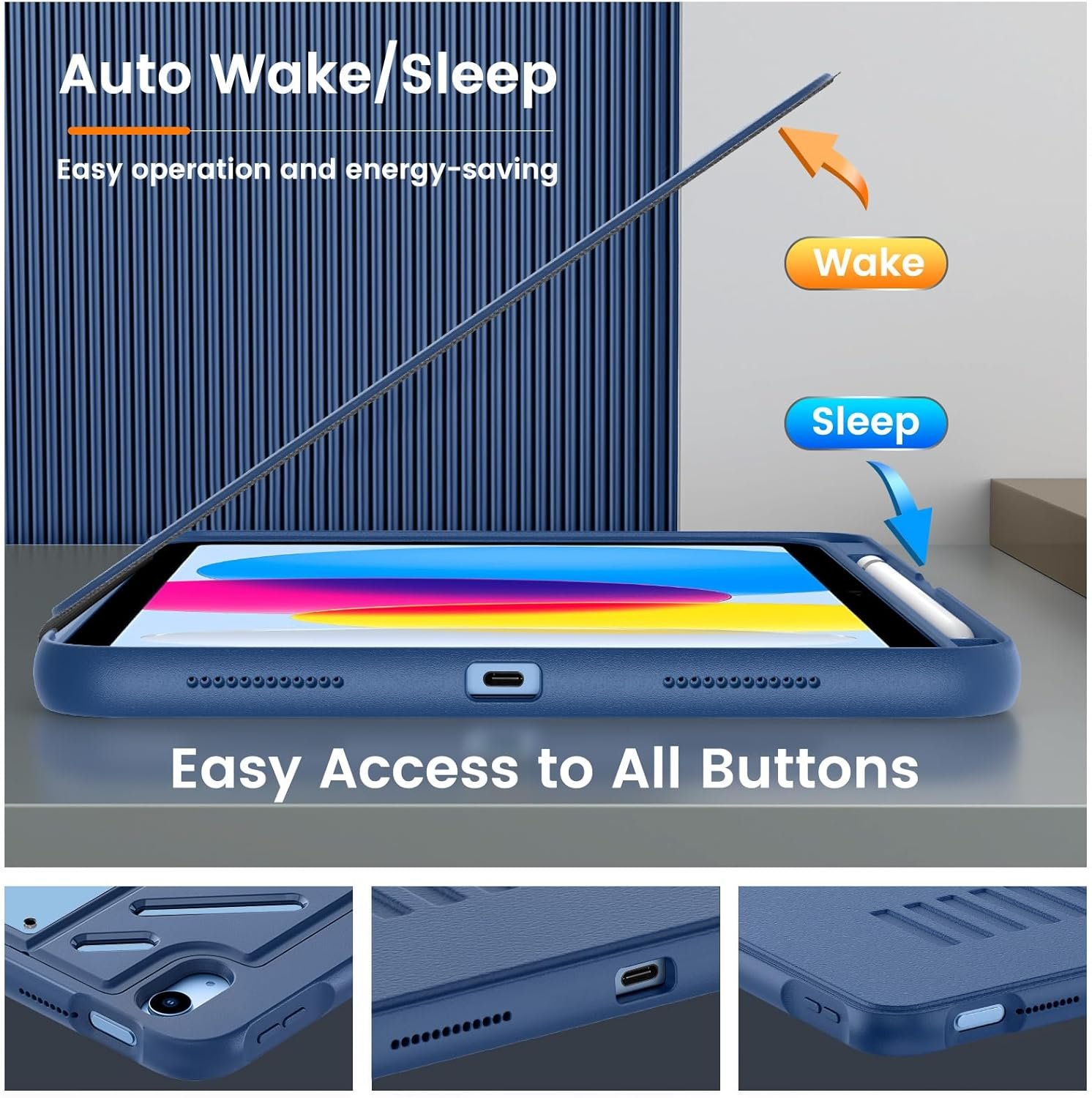 Built-in Pencil Holder : The pencil holder of this case for iPad 11th/10th generation keeps your Apple Pencil (1st gen/USB-C) well placed within easy reach, preventing loss. Also keep the apple pencil from accidental damage. (Note: apple Pencil 1st gen/ apple Pencil USB-C NOT included)