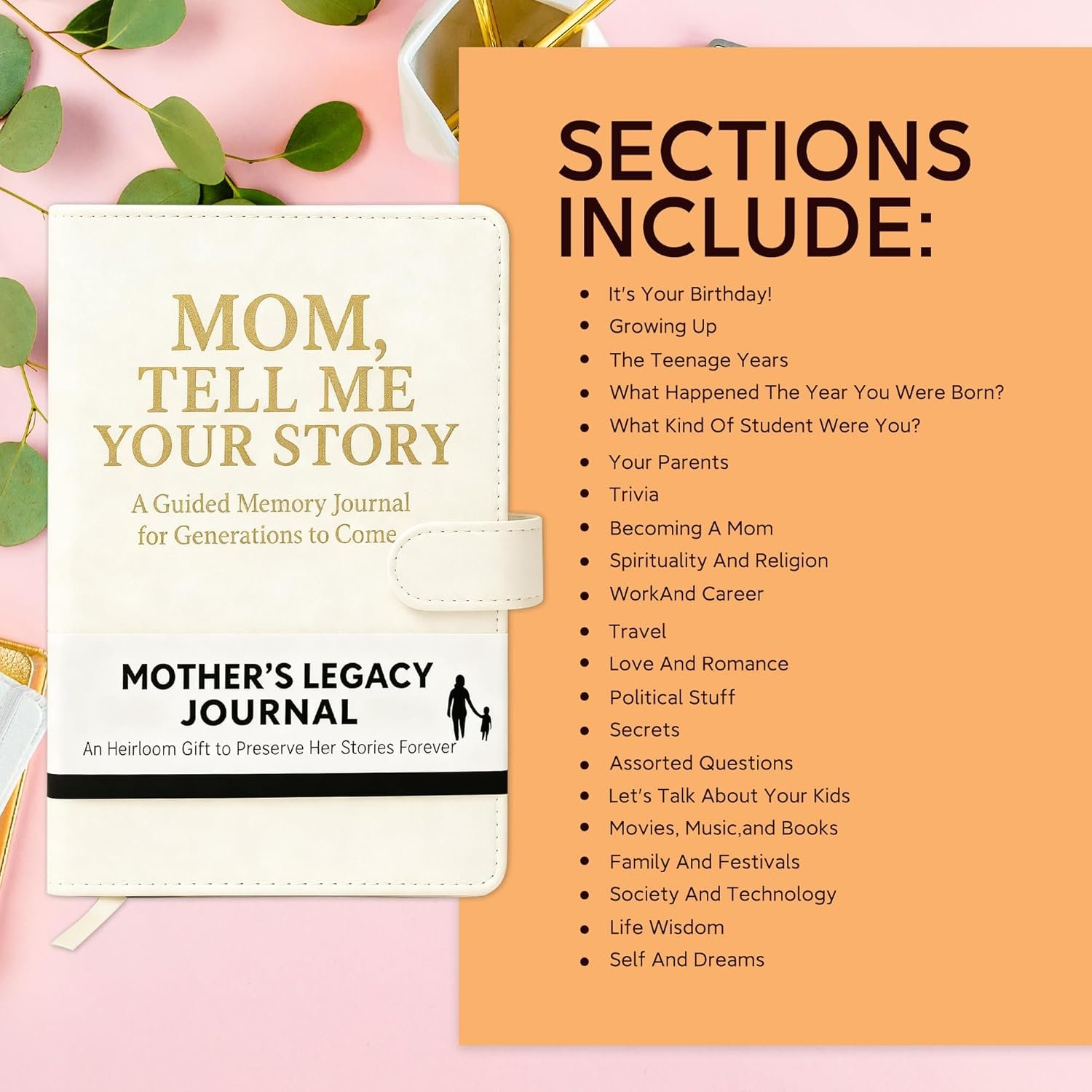Elegant & Durable Design; Bound in a hardcover leather journal with a gold-stamped logo, this keepsake is as enduring as the memories it holds. Its timeless design makes it a treasured item your mother will be proud to own