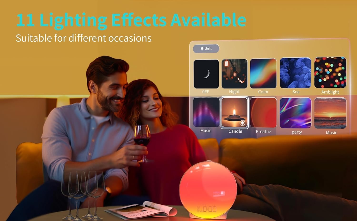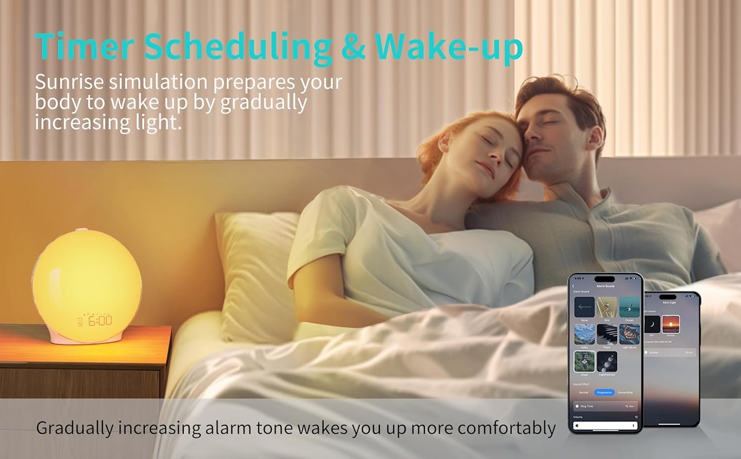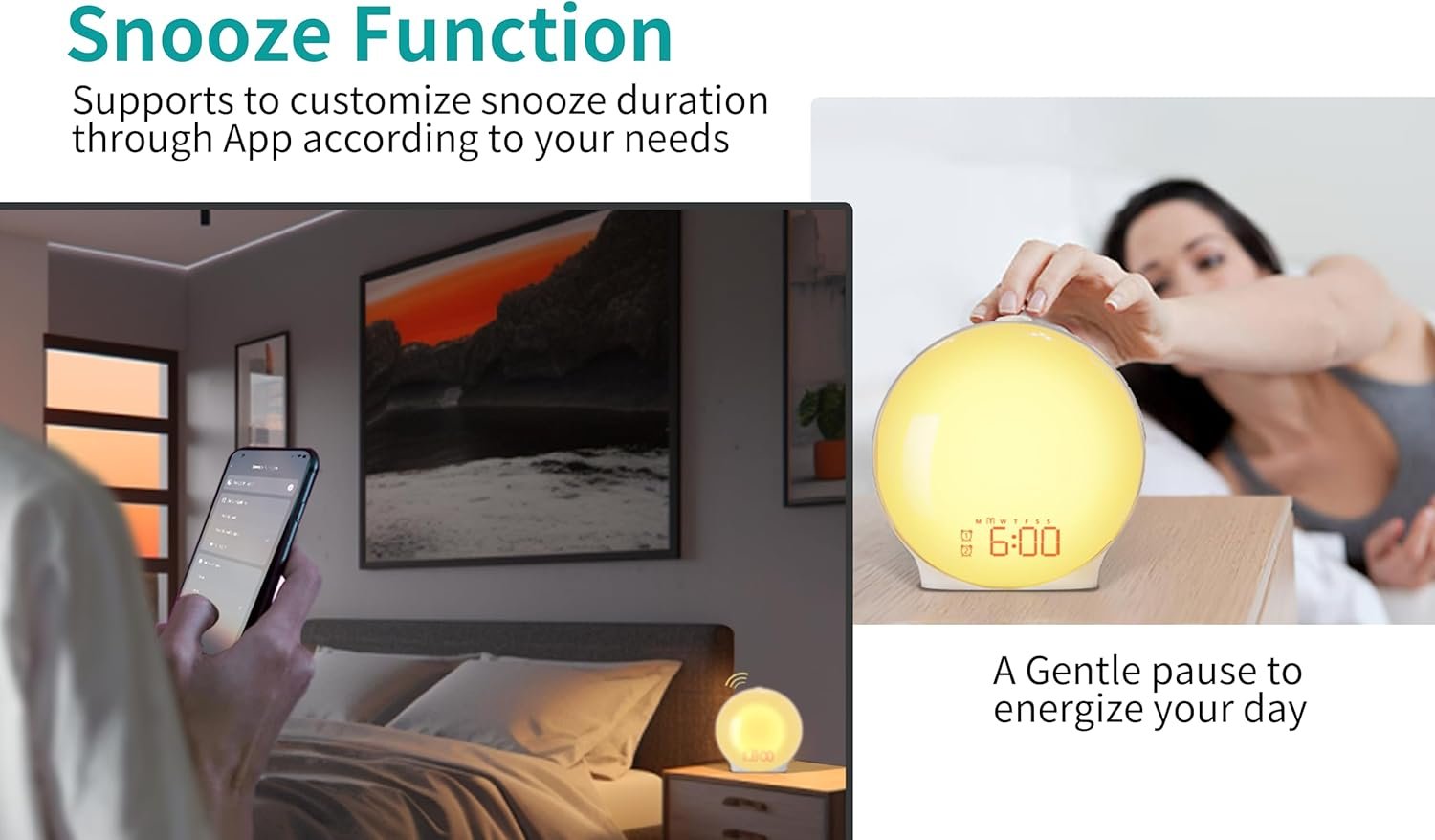 Voice-Controlled Efficiency: Upgrade your home tech with this smart sunrise alarm clock, compatible with Alexa and Google Assistant. Through a 2.4G WiFi connection, control your alarm clock with light effortlessly, making your mornings easier with voice commands.