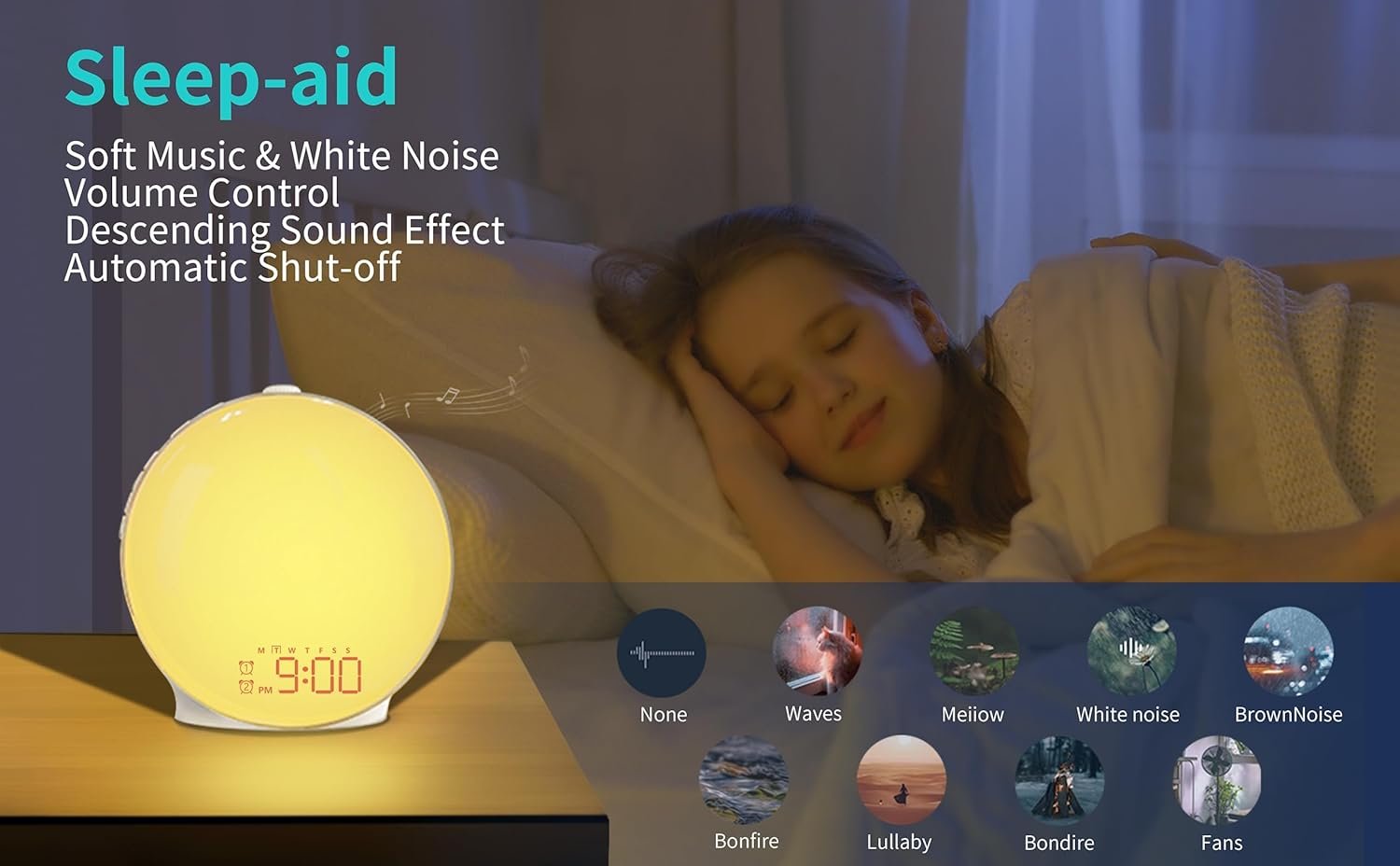 Sleep Aid Sunset Simulation: The sunset simulation feature of this alarm clock helps you unwind at night by gradually reducing light and sound over 5 to 120 minutes, or stays on all night as a calming night light. Ideal for everyone in the family, from kids to adults and heavy sleepers.