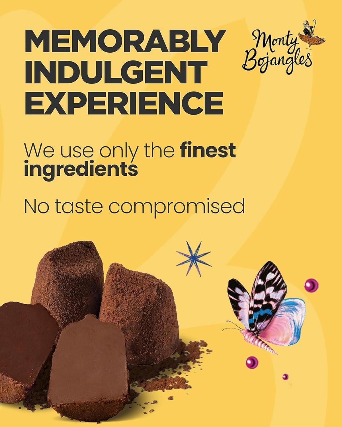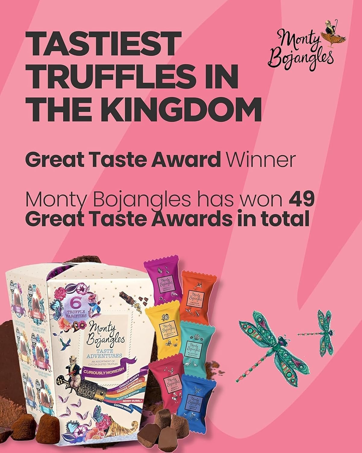 AWARD WINNING CHOCOLATE: All 6 of the chocolate truffle flavors in this pack have been awarded a prestigious Great Taste Award between 2019 and 2024. Monty Bojangles has won 49 Great Taste Awards in total!