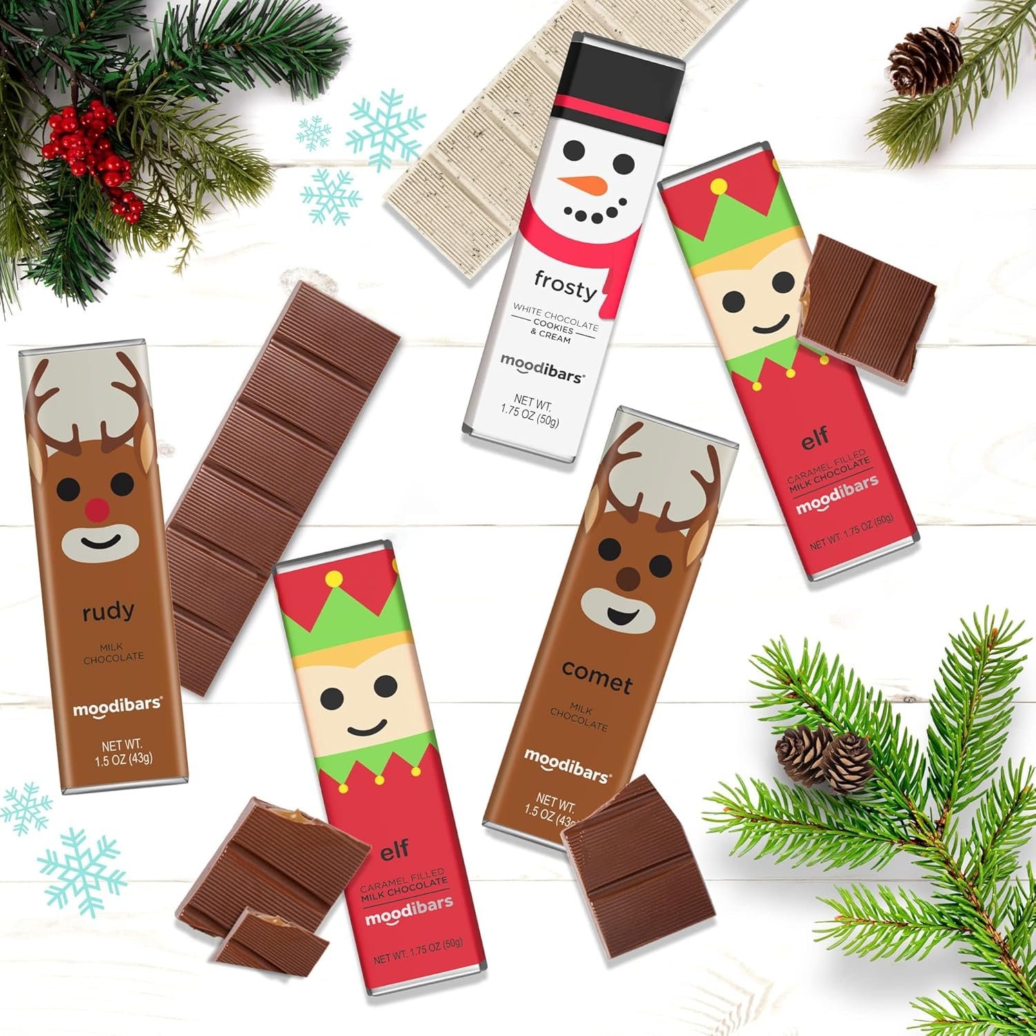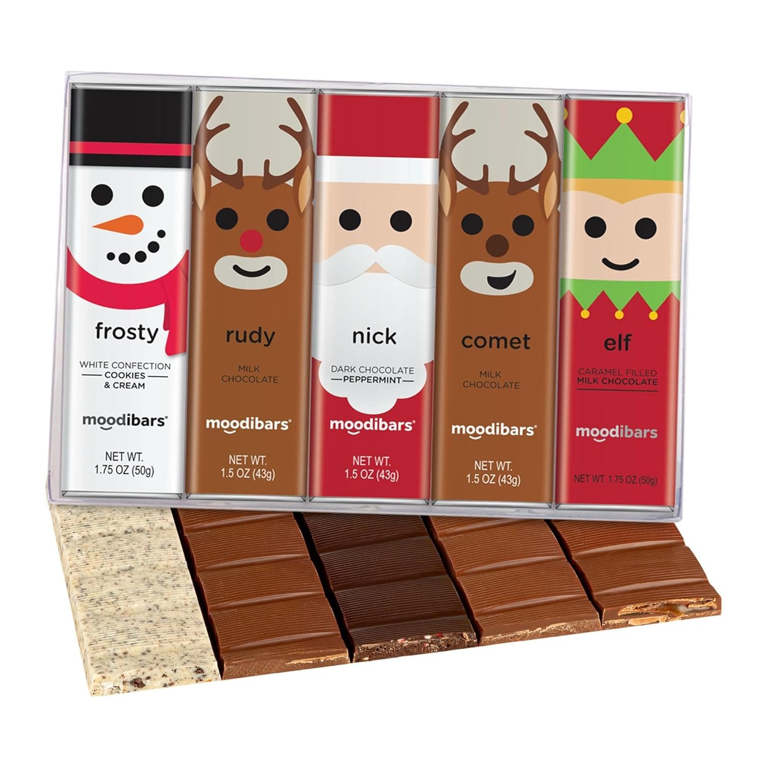 North Pole Christmas Gift – Holiday Variety Pack of Gourmet Chocolate Gift. 5 – 1.5oz Belgian Chocolate Bars including: Milk Chocolate Bar, Dark Chocolate Peppermint Bar, Milk Chocolate Caramel Filled Bar & White Chocolate Cookies & Cream Bar. Santa Claus Collection Chocolates come in acetate gift pack and make the perfect holiday gift, Christmas gift, and birthday gift for Mom, Dad, Grandma, Grandpa or kids.