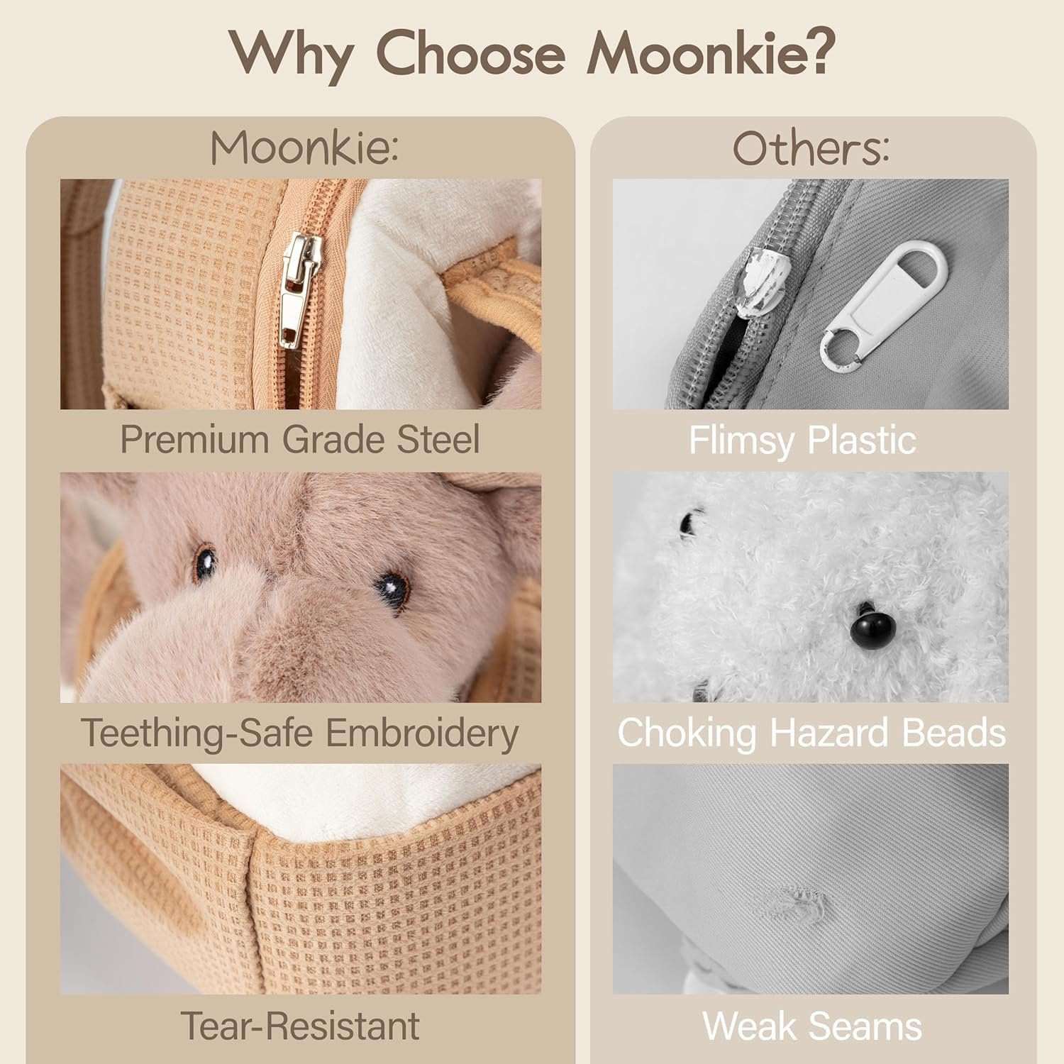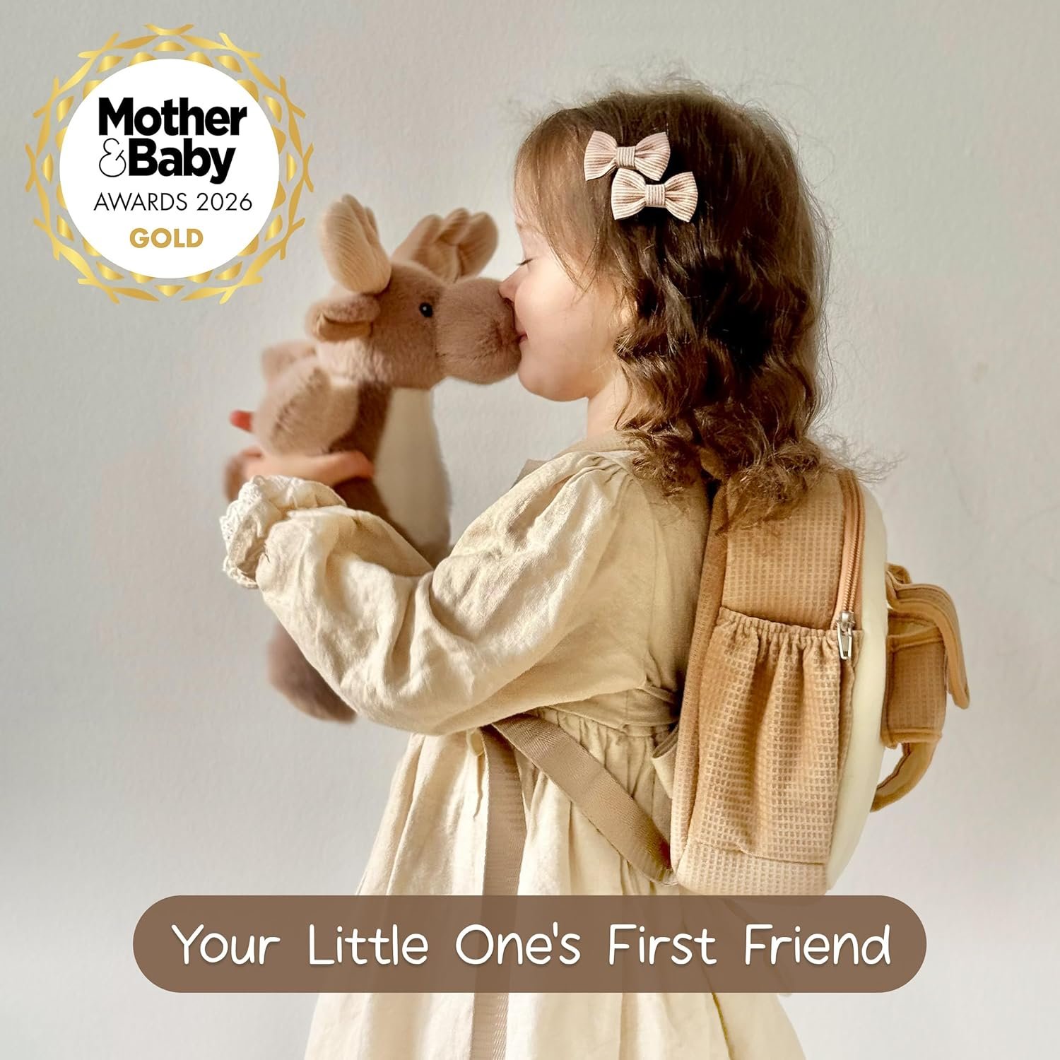 Certified Save for Toddler: Moonkie’s reindeer backpack meets U.S. ASTM F963-23 and EU EN71 safety standards. Thoughtfully crafted from ultra-soft with securely embroidered eyes—making it safe and gentle for toddlers 18 months and up.
