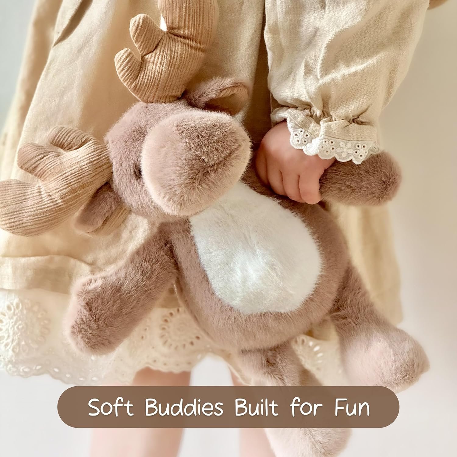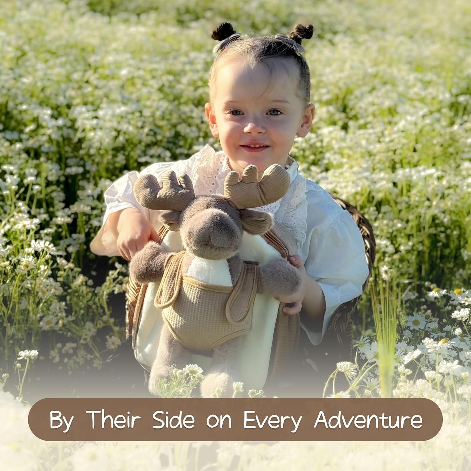 Take-Along Reindeer Buddy: A cuddly reindeer plush is clipped to the front and always ready to play! Detachable for hugs or solo adventures, it offers double the delight: a soft backpack and a sweet companion in one.