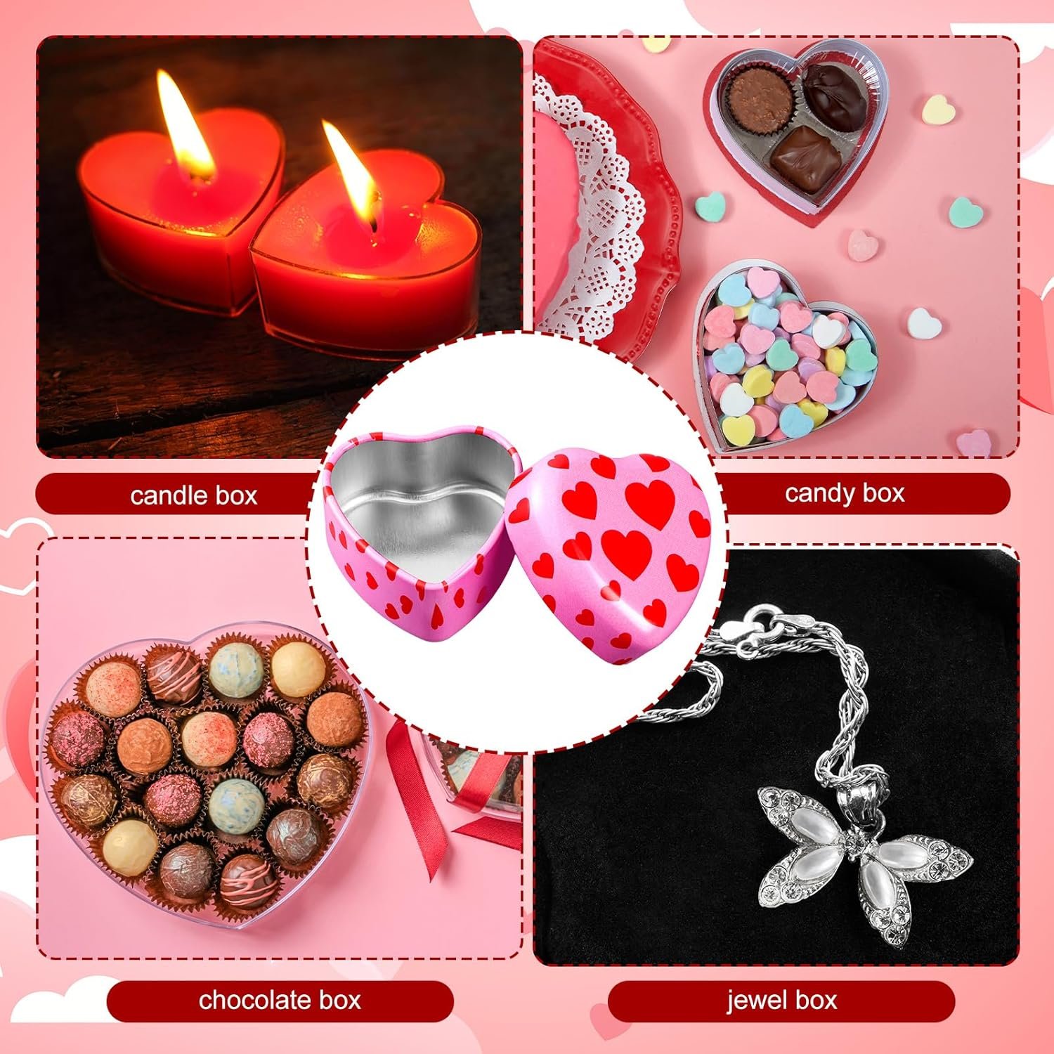 Widely Applicable: these valentine tins can not only be used to make candles, but also as wedding party gifts, store gifts, handicrafts, and are also suitable for placing various items such as candies, jewelry, spices, herbs and so on