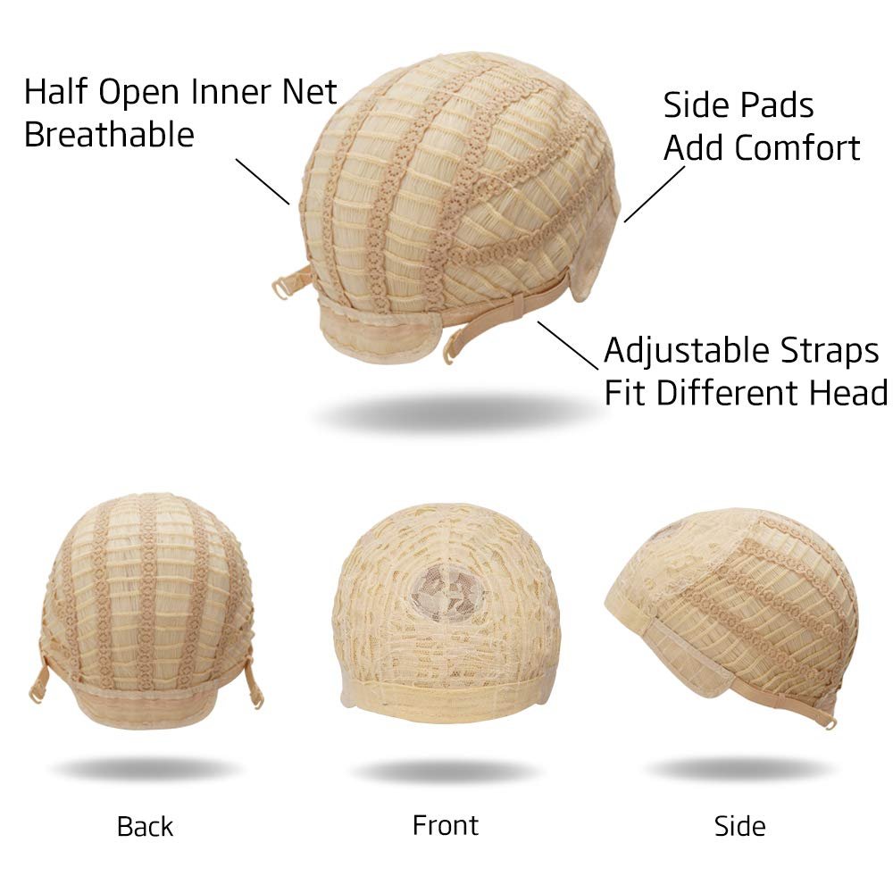 Wig Cap Structure: Equipped with a breathable rose net cap that is a one-size-fits-all inner cap, average cap size circumference 22.5 inches with 2 adjustable straps, which can be intertwined to a fixed position to suitable different head sizes.