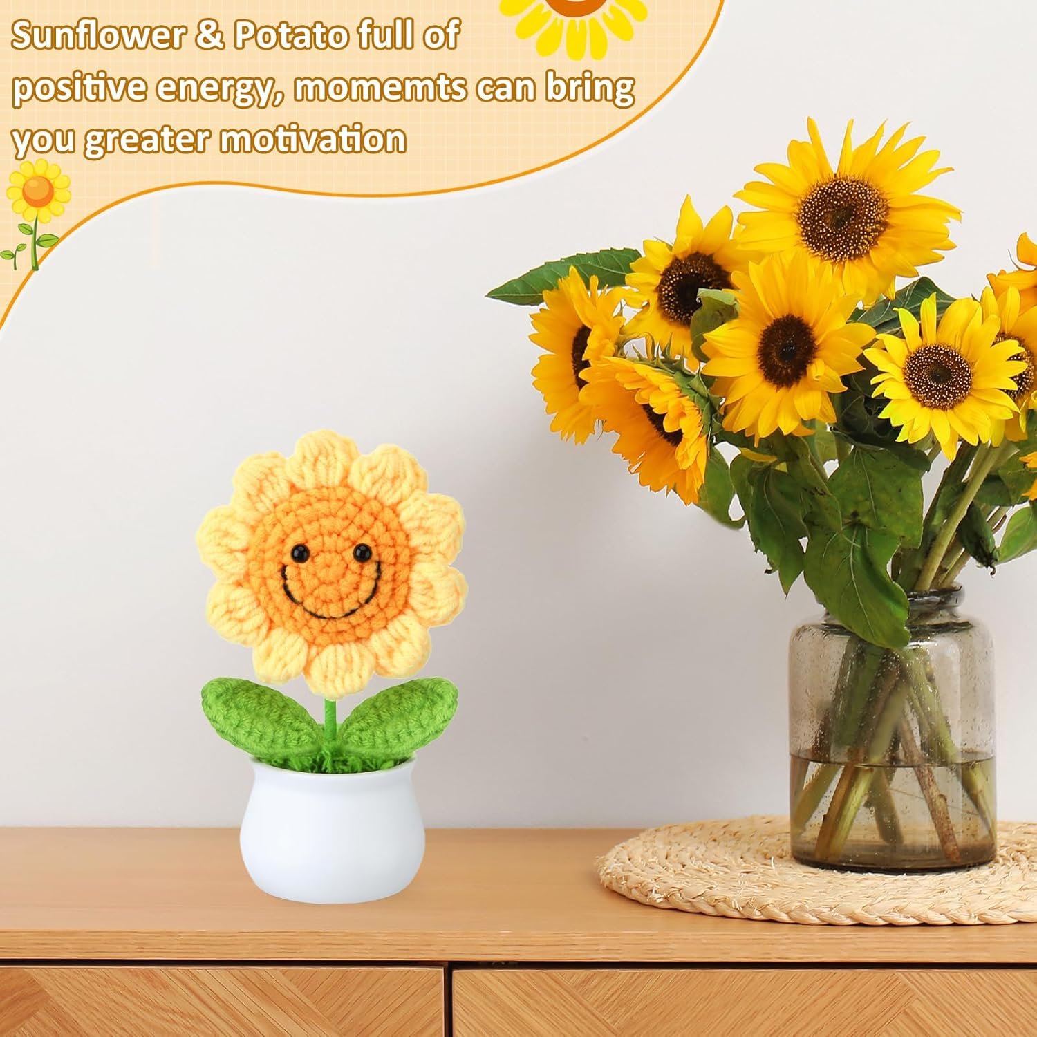 Exquisite Knitted Sunflowers: Each crochet sunflower is handmade by skilled artisans, offering a realistic touch that mimics the beauty of real sunflowers, making them as inspirational birthday gifts for women, men, teacher, mom, sister, coworkers, and best friends