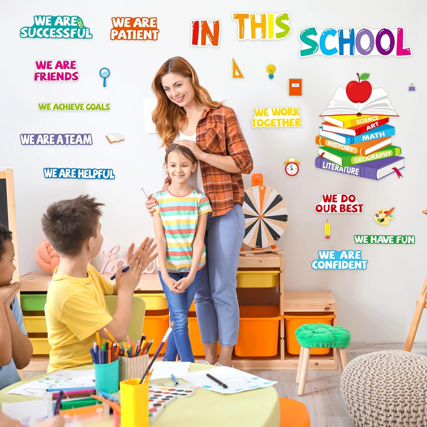Beautiful Design: These welcome back to school bulletin paper cutouts are designed with school supplies, as well as many motivational words, “We are helpful”, “We are successful”, etc., to create a good classroom atmosphere for children.