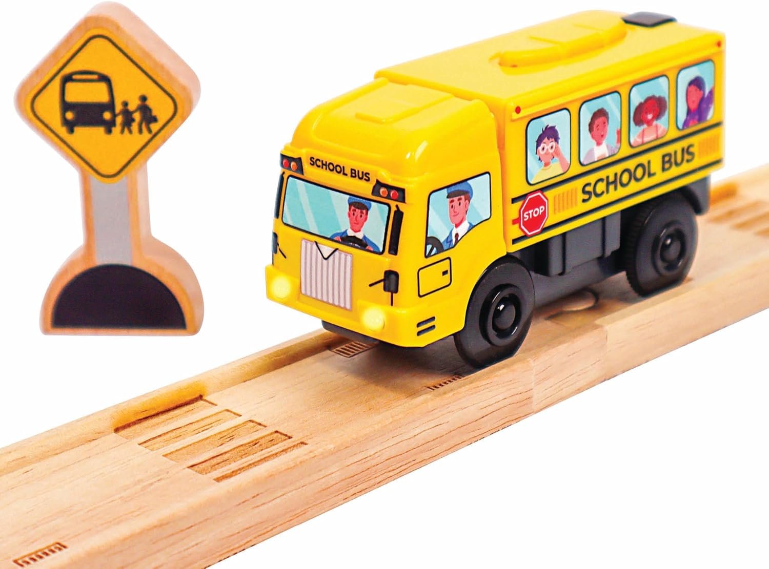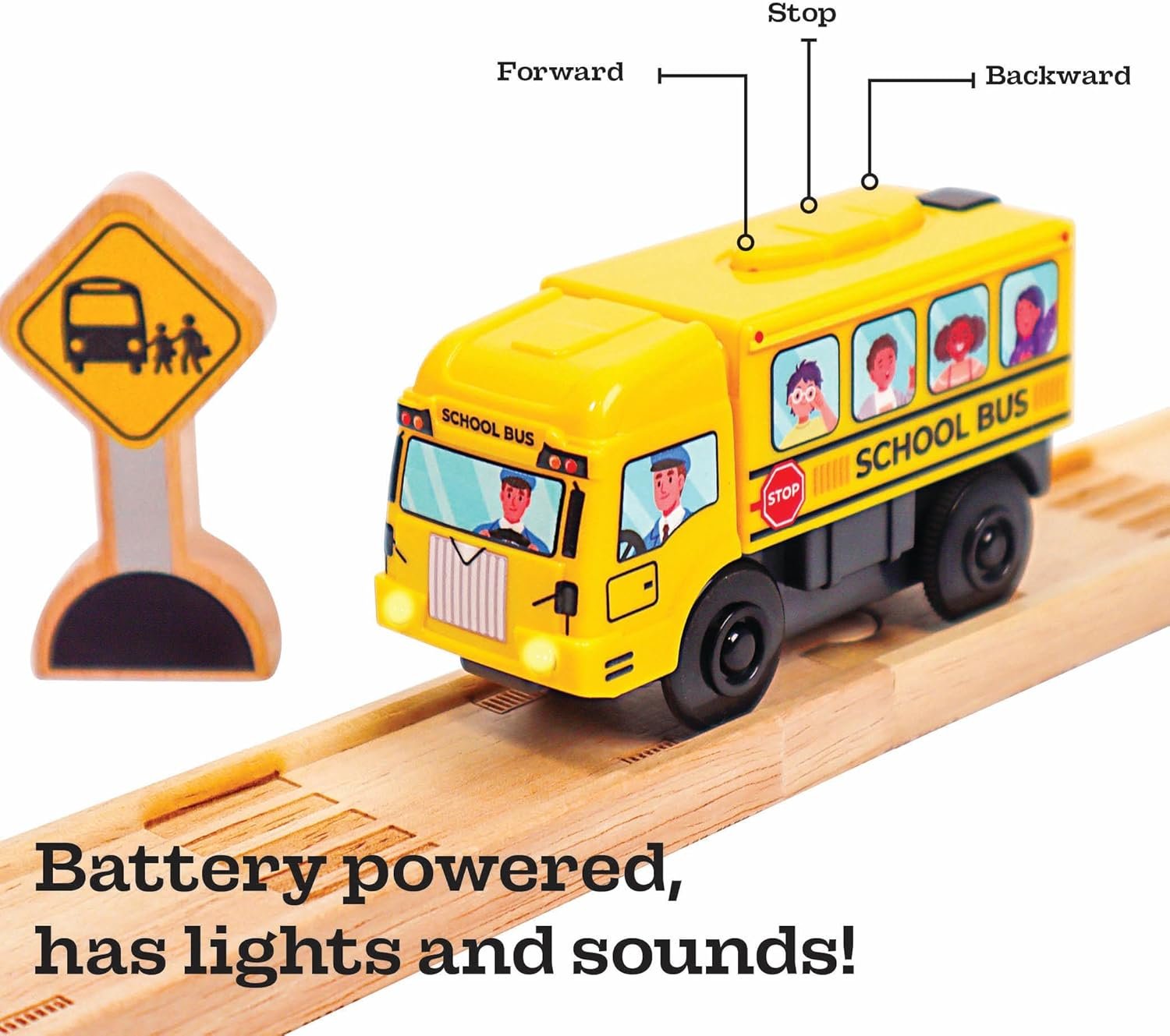 MOTORIZED SCHOOL BUS WITH LIGHTS AND SOUND – Motorized school bus for wooden track, great for any wooden city!