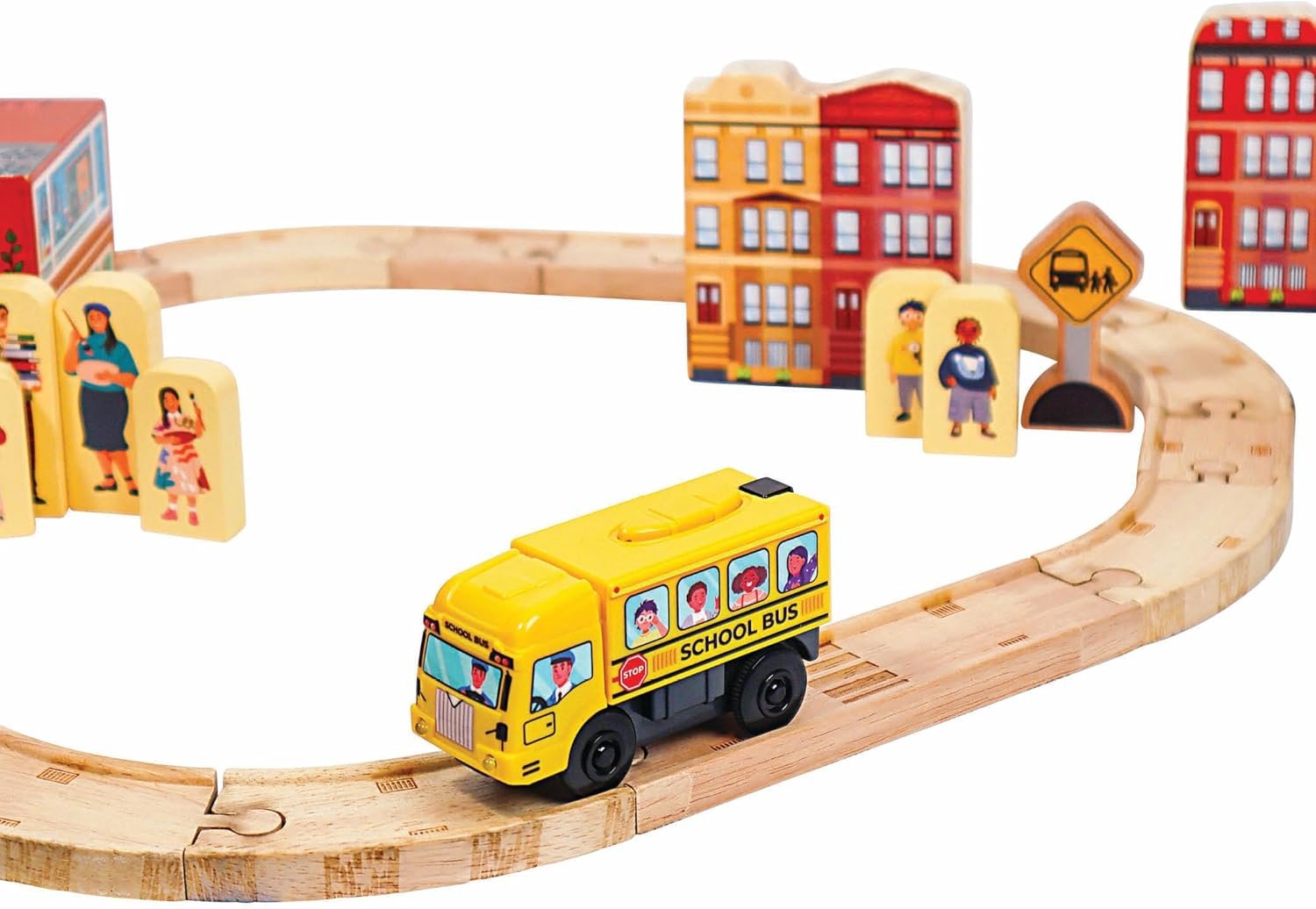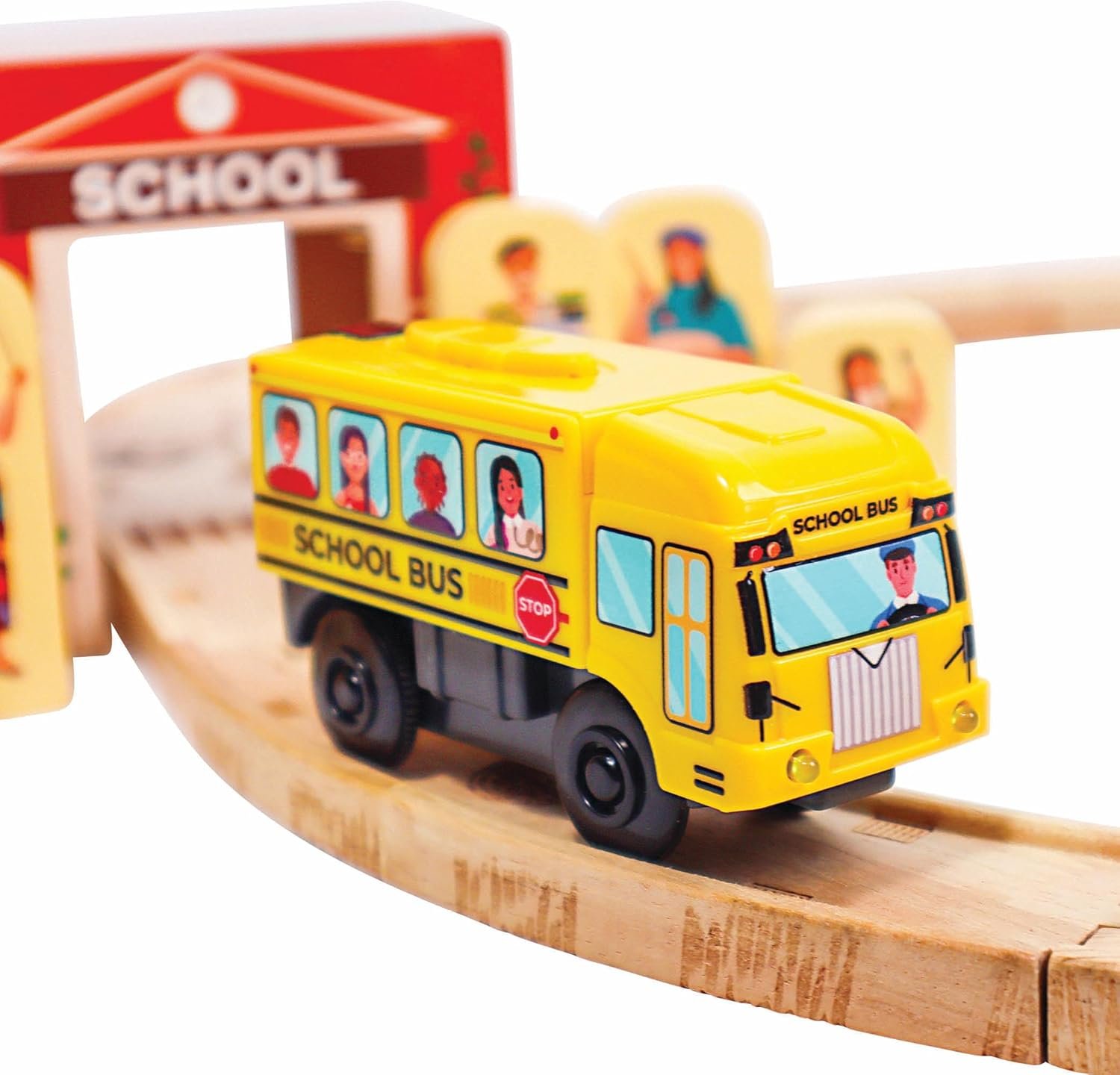 IT’S TIME FOR SCHOOL! This fun motorized School Bus is sure to add plenty of imaginative play to your wooden railway.