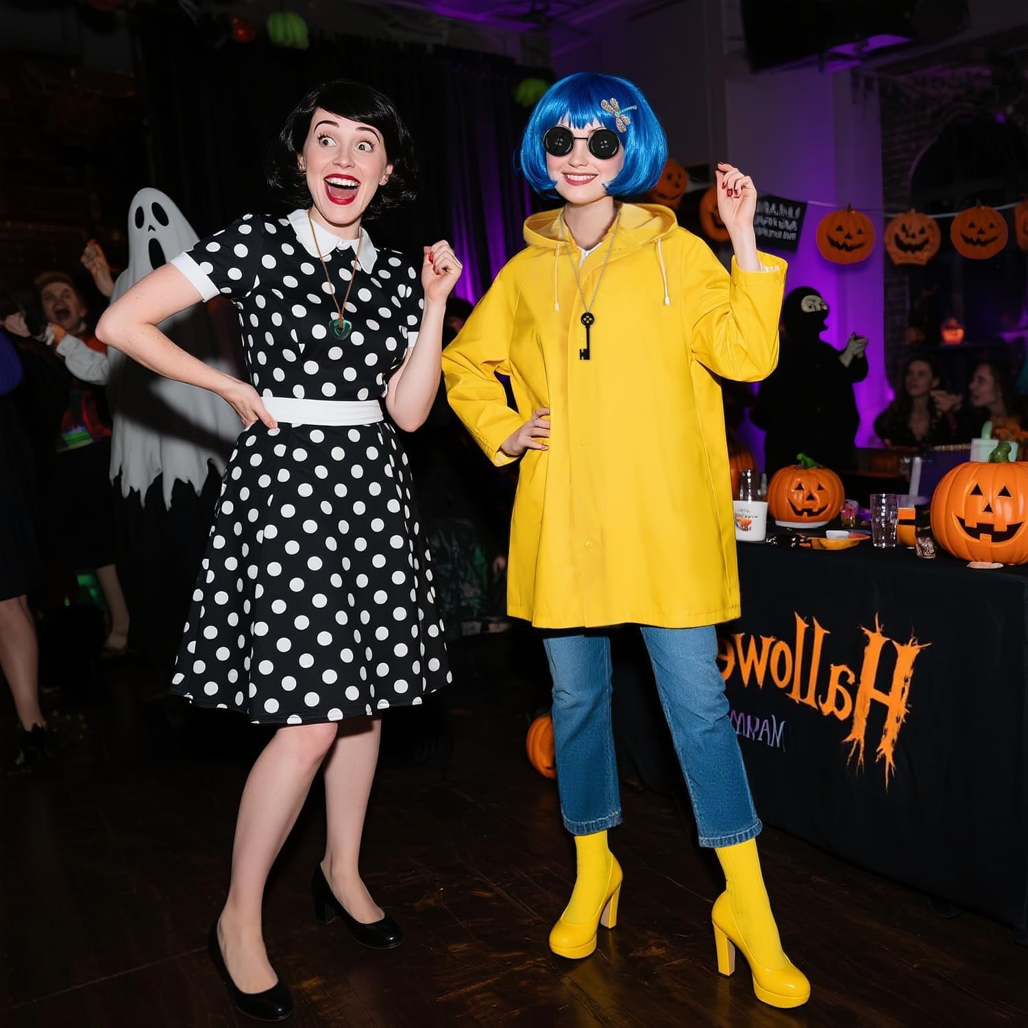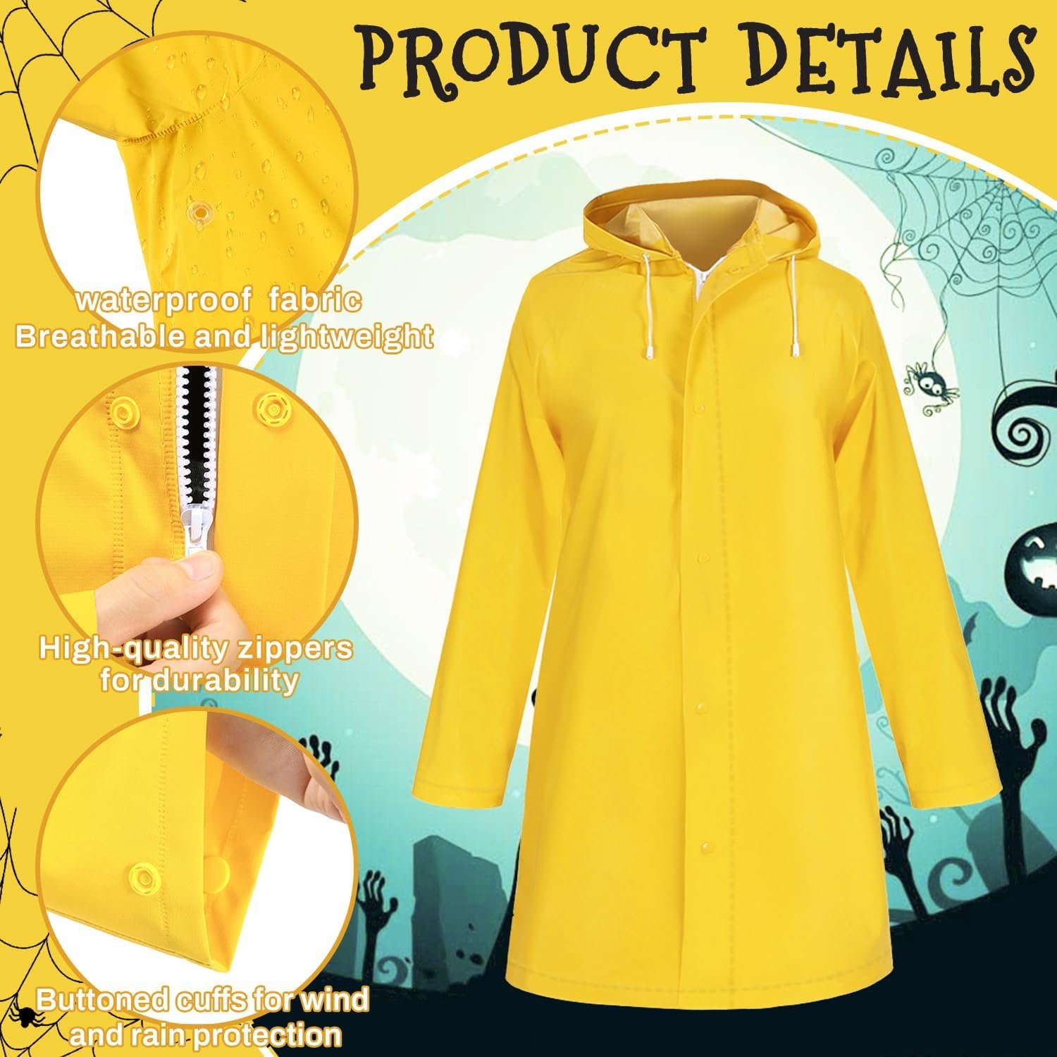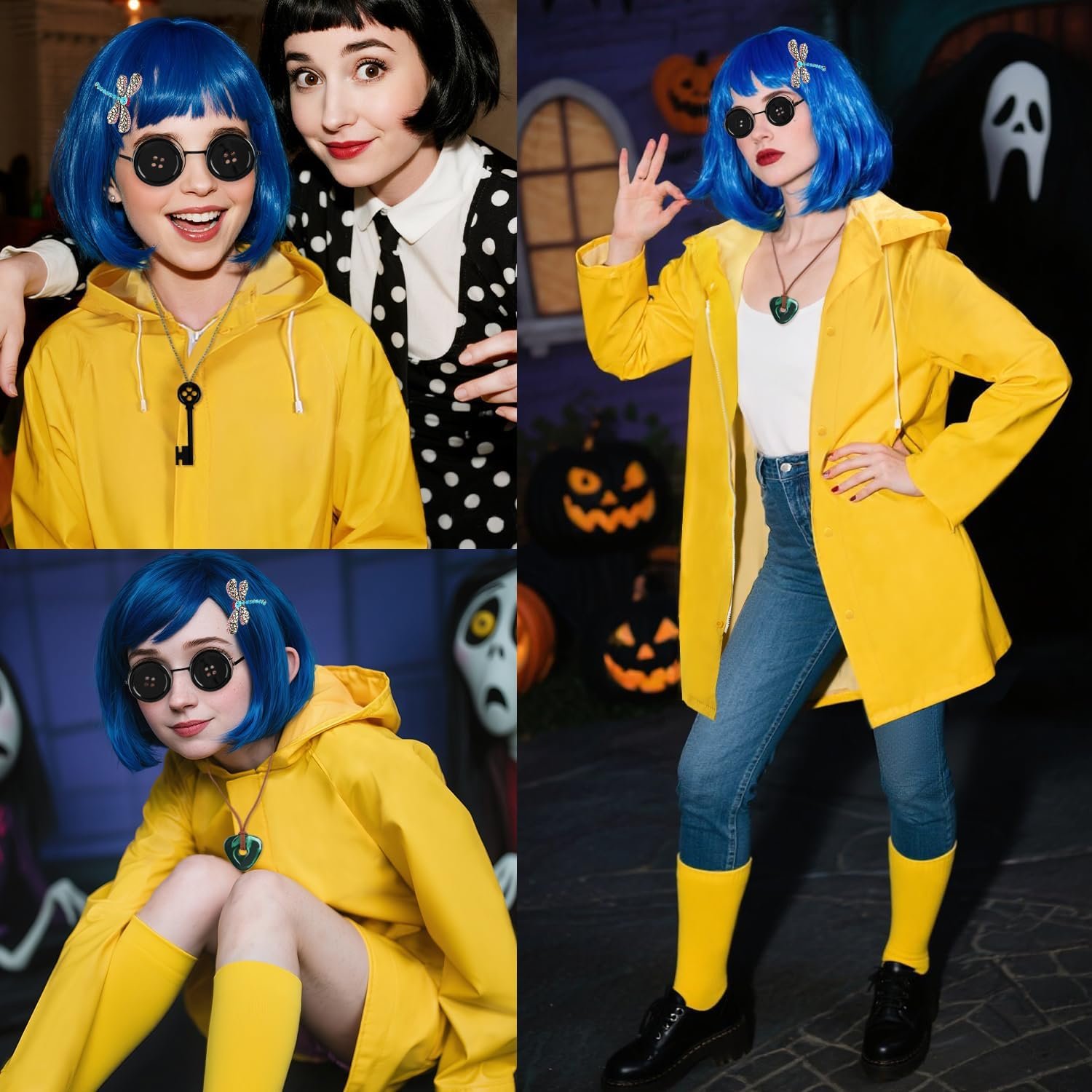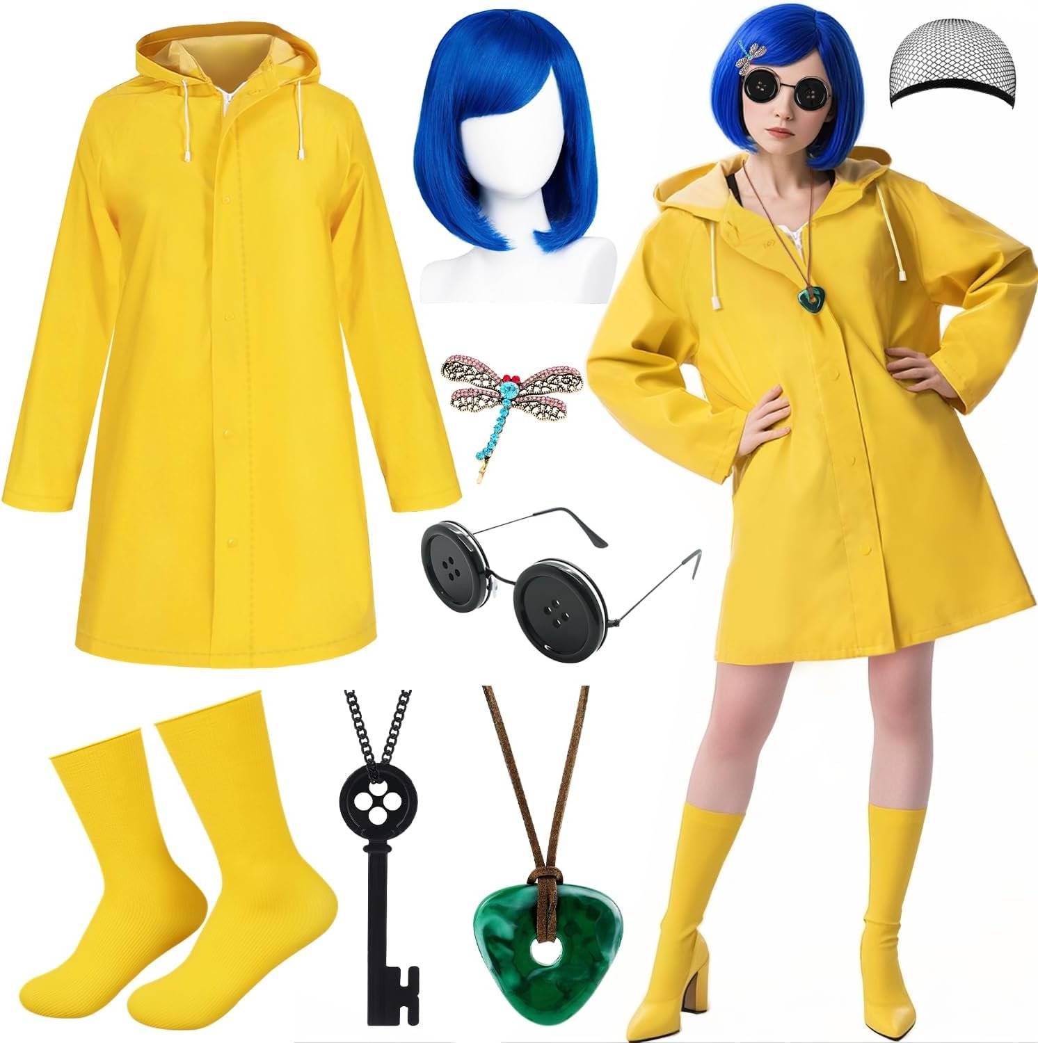 Step into an enchanting world with this 7-piece fantasy costume set, designed for women and teenage girls who love adventure, mystery, and magical journeys. Featuring a vibrant blue wig, a yellow hooded raincoat (86cm/33.8in long), and yellow crew socks, this set channels a bold, adventurous character with a whimsical twist.