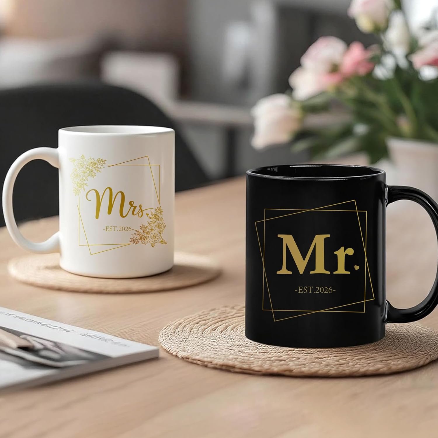 Elegant couple cup set: Celebrate sweet love and intimate couple life with this beautifully designed coffee cup set for both men and women. It is used to express feelings, and the elegant “Mr. and Mrs.” cup set is a thoughtful choice to express deep love and sincere friendship.