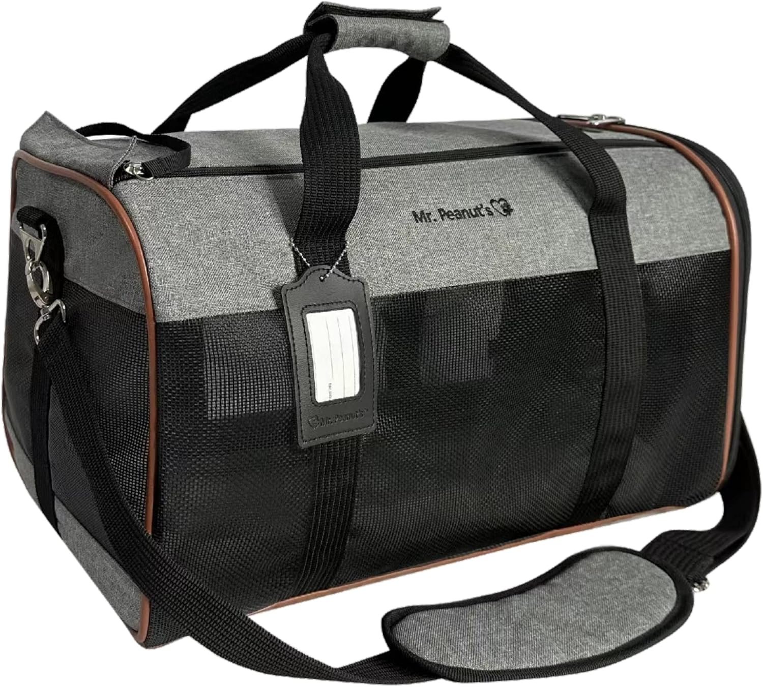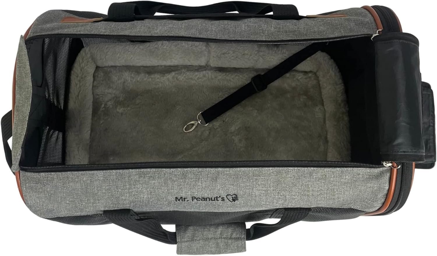 Mr. Peanut’s Rhodium Series Mini Soft Sided Pet Carrier, 18LX12WX9″H Luxury Travel Tote with Premium Self Locking Zippers & Plush Faux Fleece Bedding with a Sturdy Plywood Base
