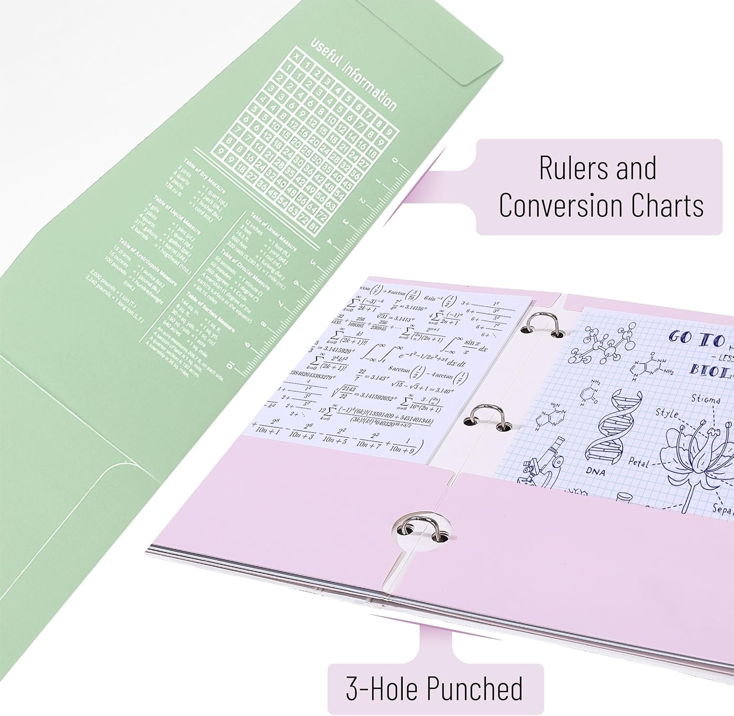 The interior of each folder features useful printed reference materials, such as rulers and conversion charts, designed to assist with your tasks or studies swiftly and conveniently.