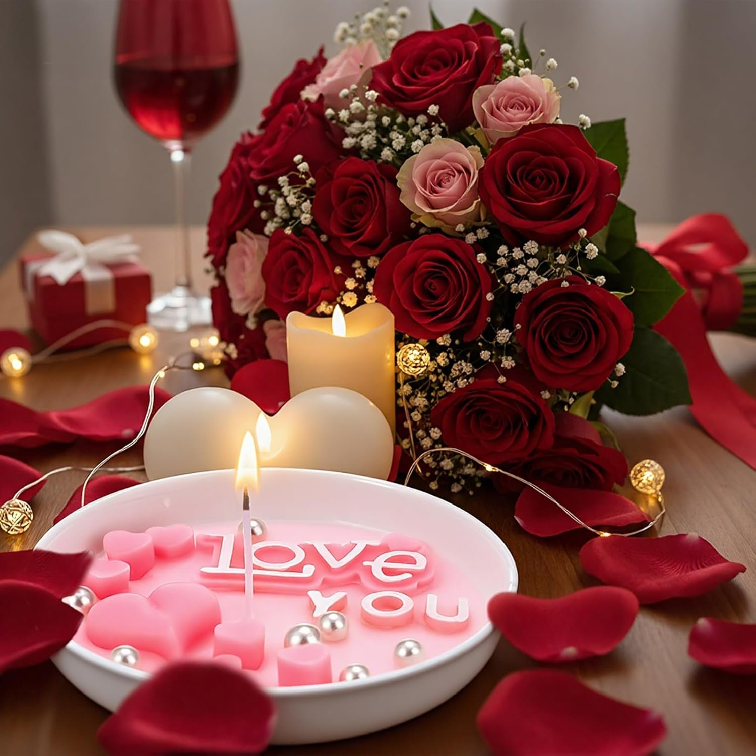Decorative Candle: you will get a valentines day scented candles with the scent of freesia, in the shape of a heart, with “L” “o” “v” “e” letter, white pearl, suitable as a valentine’s day gift for female friends around you