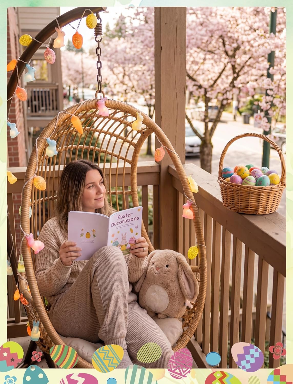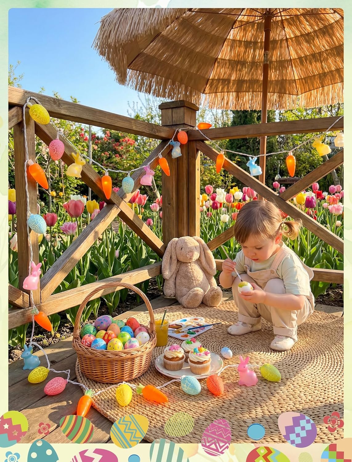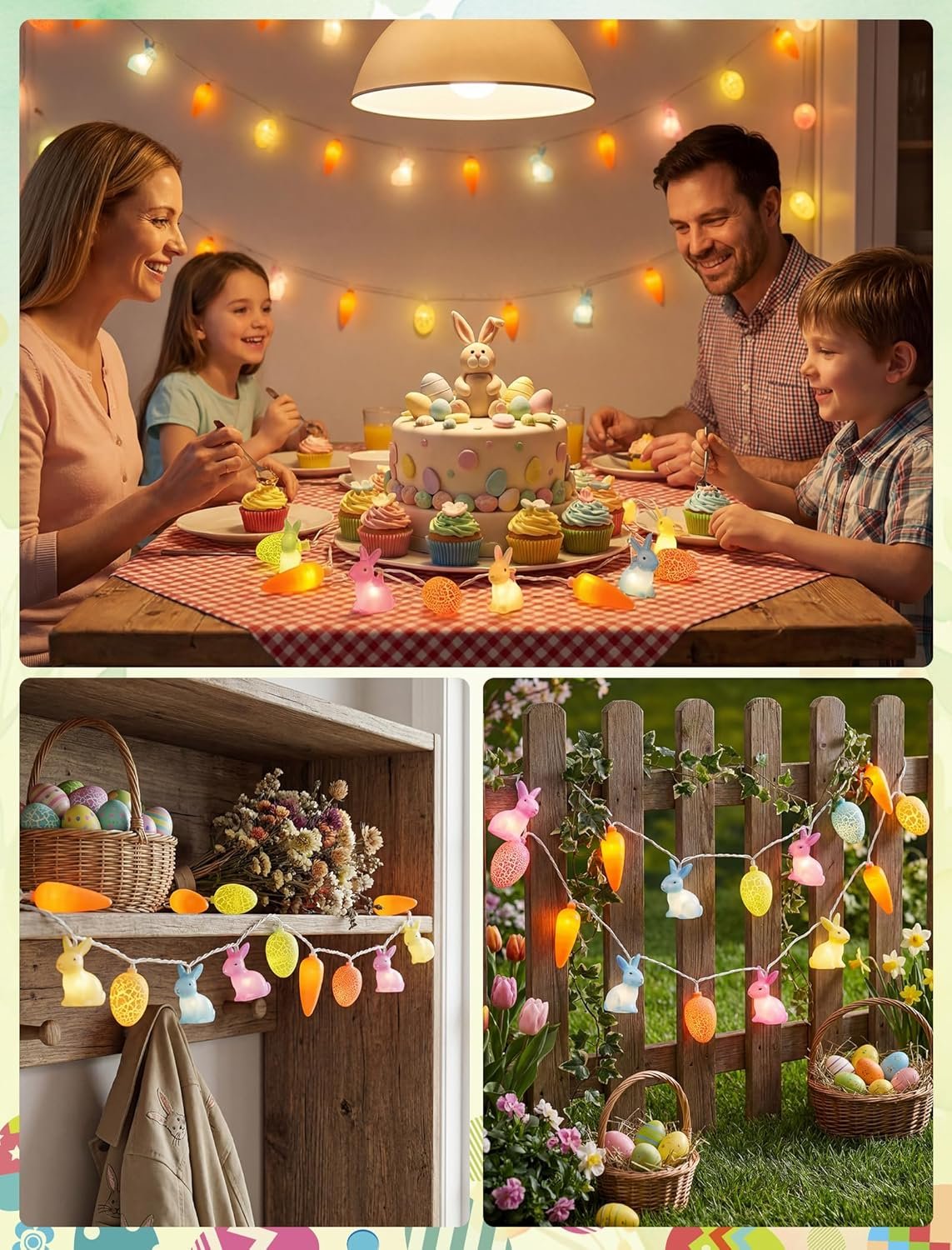 🄚UL-Certified Indoor & Outdoor Easter Outdoor Light String: Crafted from weatherproof plastic with UL-listed safety. The flexible white wire molds easily for hanging around doorways, windows, mantels, or garden displays, creating a dazzling spring-themed showcase.