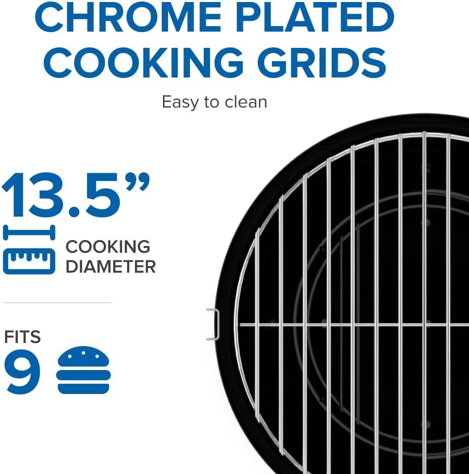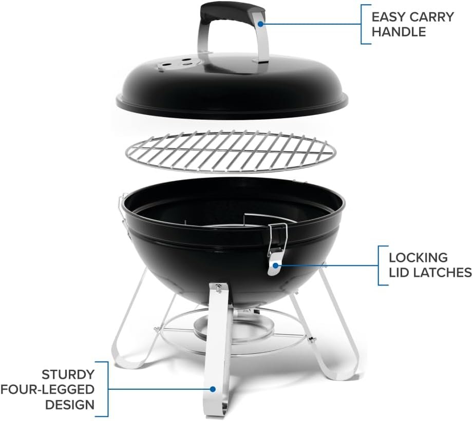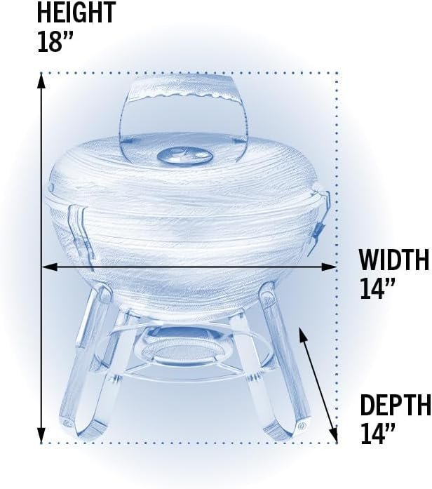 The 14-inch diameter cooking area provides loads of space for grilling in a portable barbecue grill